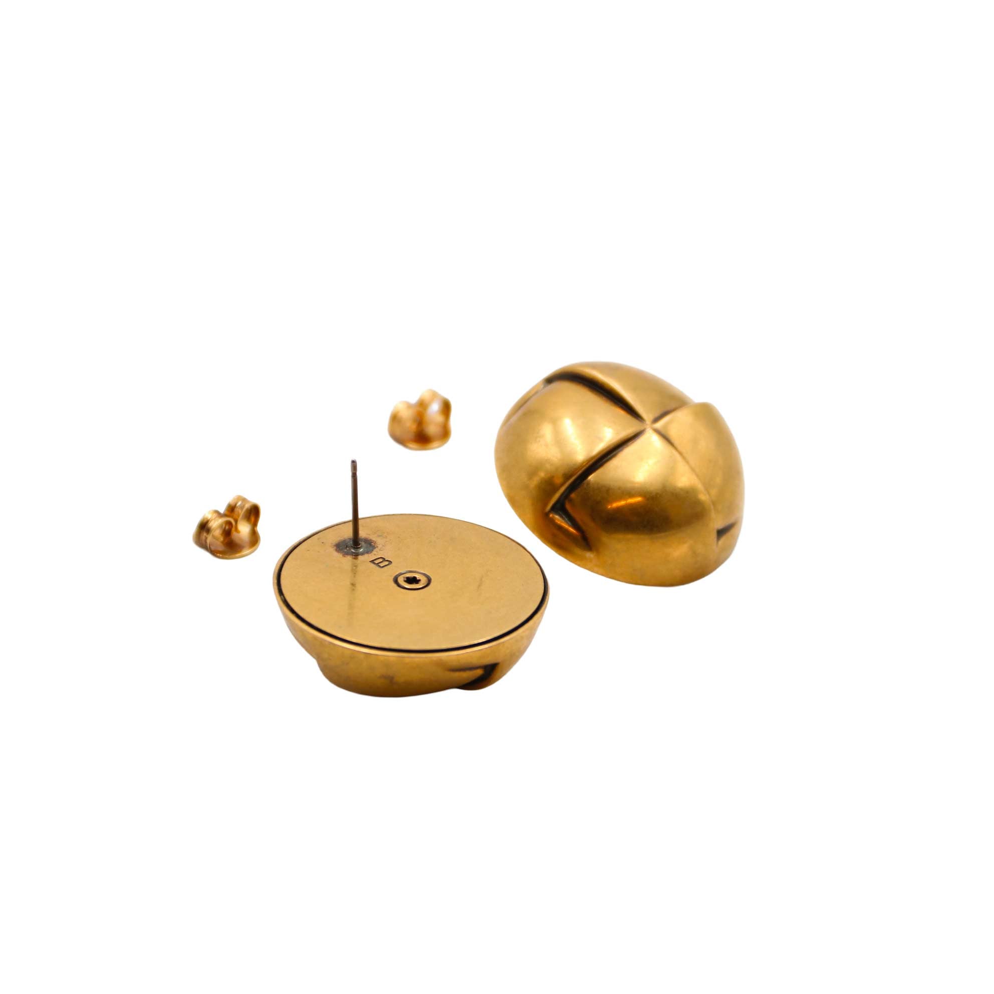 Boucles d’oreilles Balenciaga en métal doré vieilli, à clip. Un modèle au design sobre et sculptural, typique du style affirmé de la Maison Balenciaga.