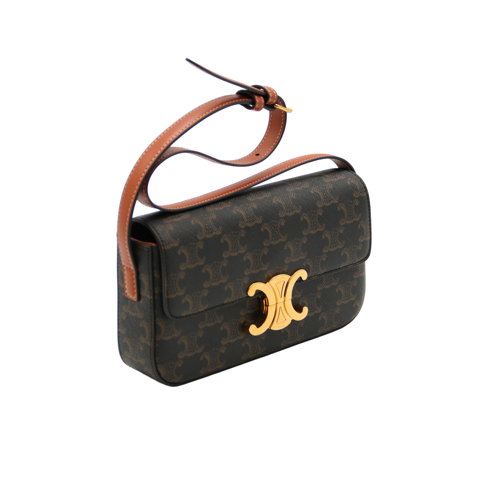 Sac iconique de la Maison Celine, le modèle Triomphe Claude séduit par son design structuré et son fermoir signature doré. Réalisé en toile Triomphe marron avec finitions en cuir lisse, il incarne l’élégance minimaliste et intemporelle de la marque. Grâce à sa bandoulière ajustable, il se porte aussi bien à l’épaule qu’en travers du corps.
