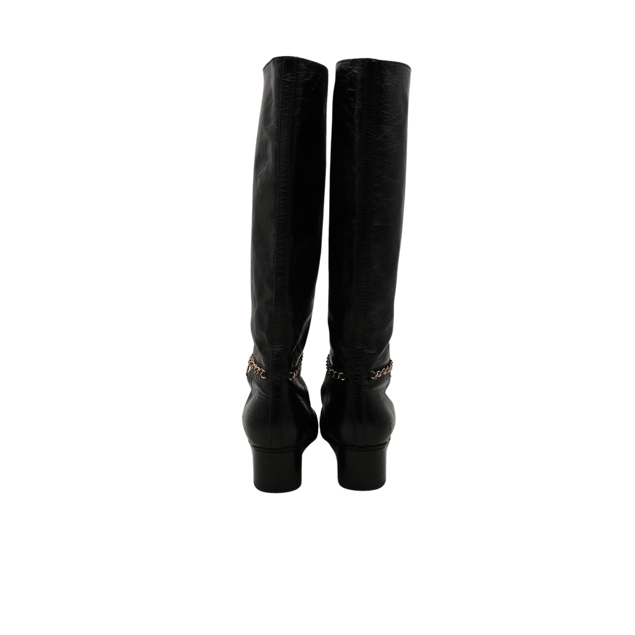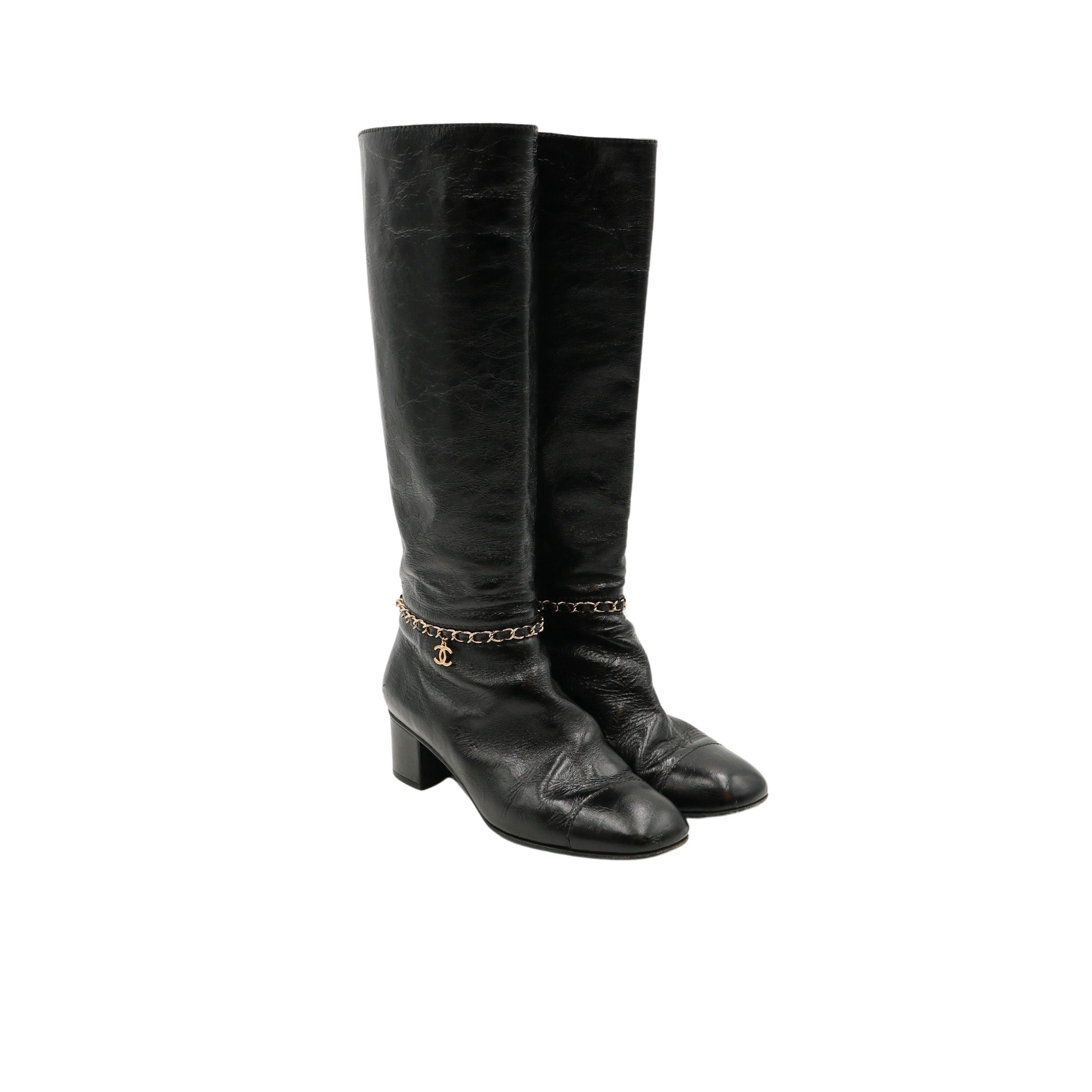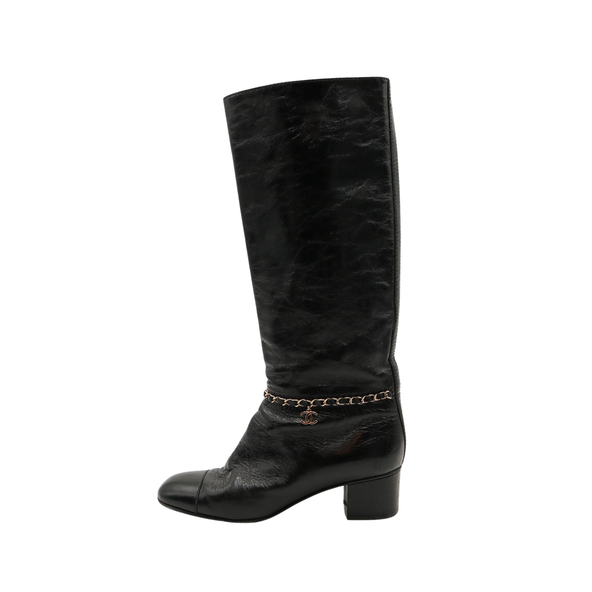 CHANEL – Bottes chaîne & cuir vieilli – Noir