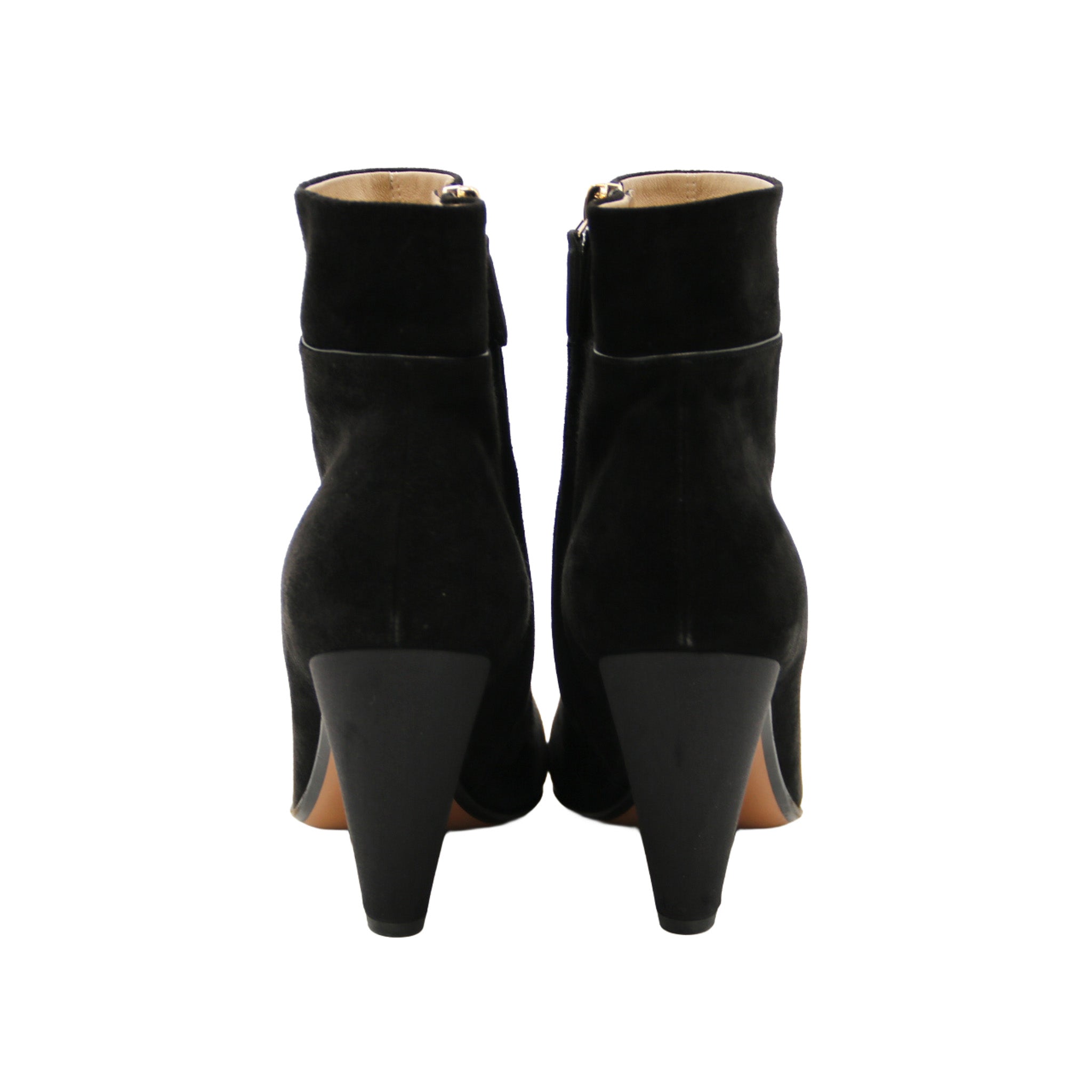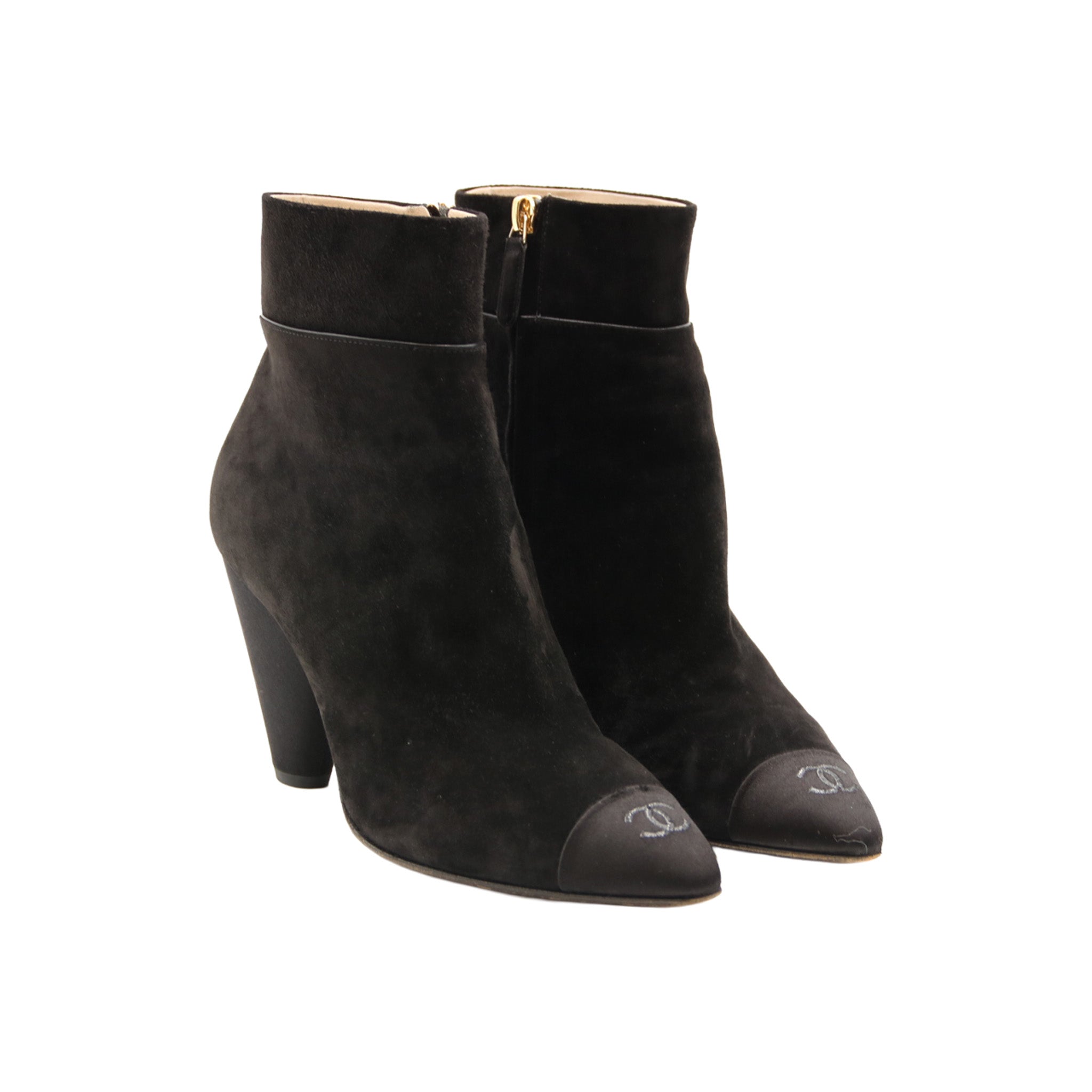 Ces bottines CHANEL incarnent une élégance sobre et intemporelle, fidèle à l’esthétique iconique de la maison. Confectionnées en daim noir, elles se distinguent par leur bout pointu orné du logo CC et leur silhouette élancée sublimée par un talon équilibré. Un modèle raffiné, facile à porter au quotidien comme pour des tenues plus habillées.