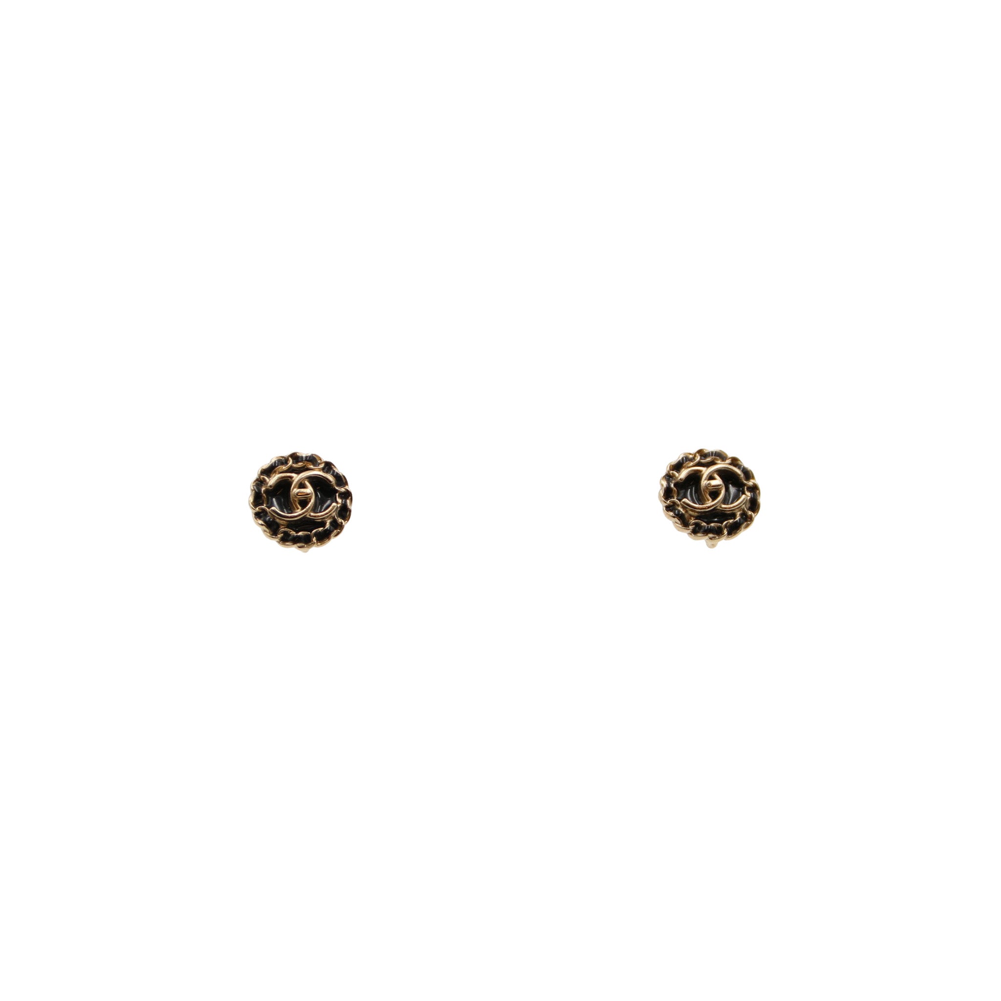 CHANEL – Boucles d’oreilles rondes CC entrelacé cuir – A18