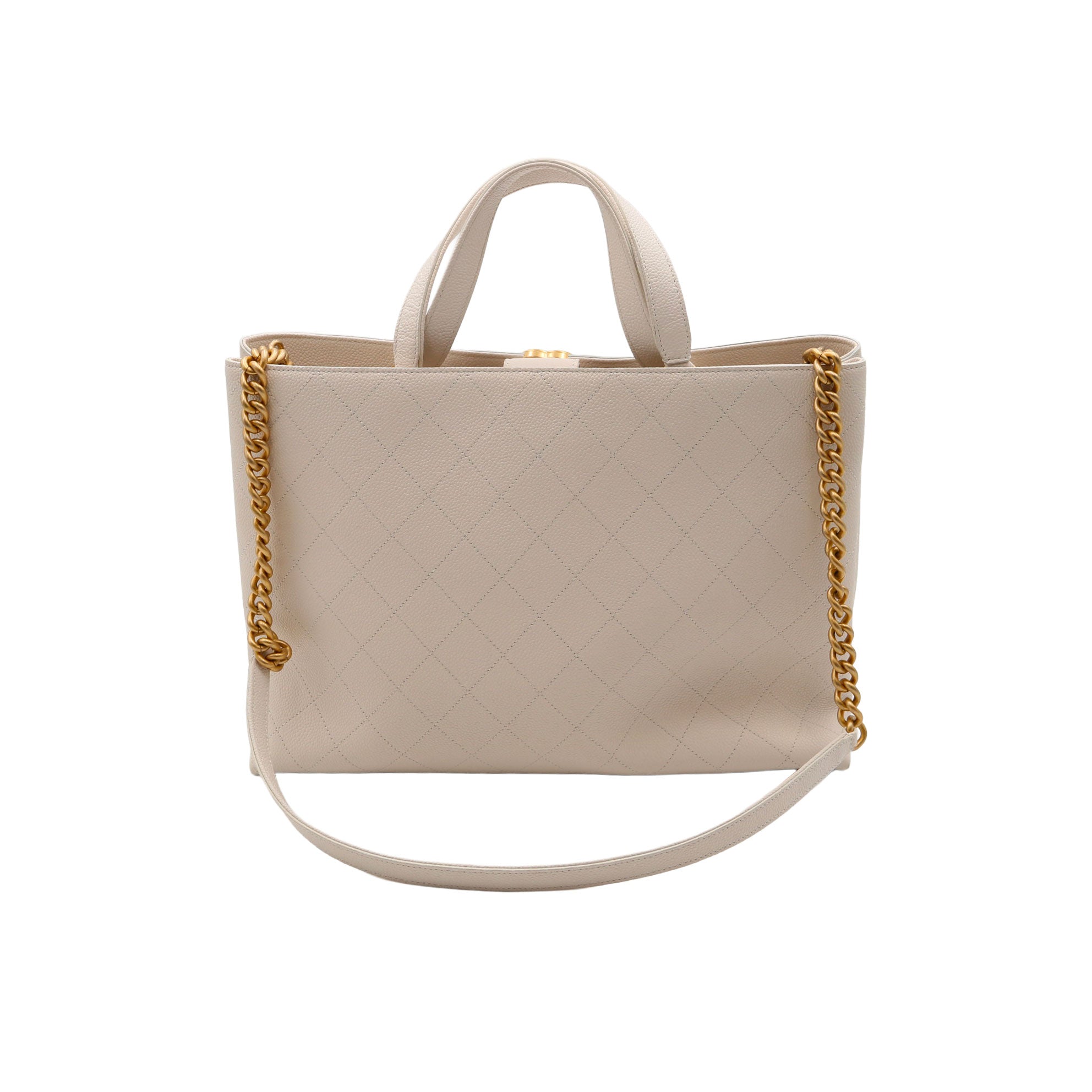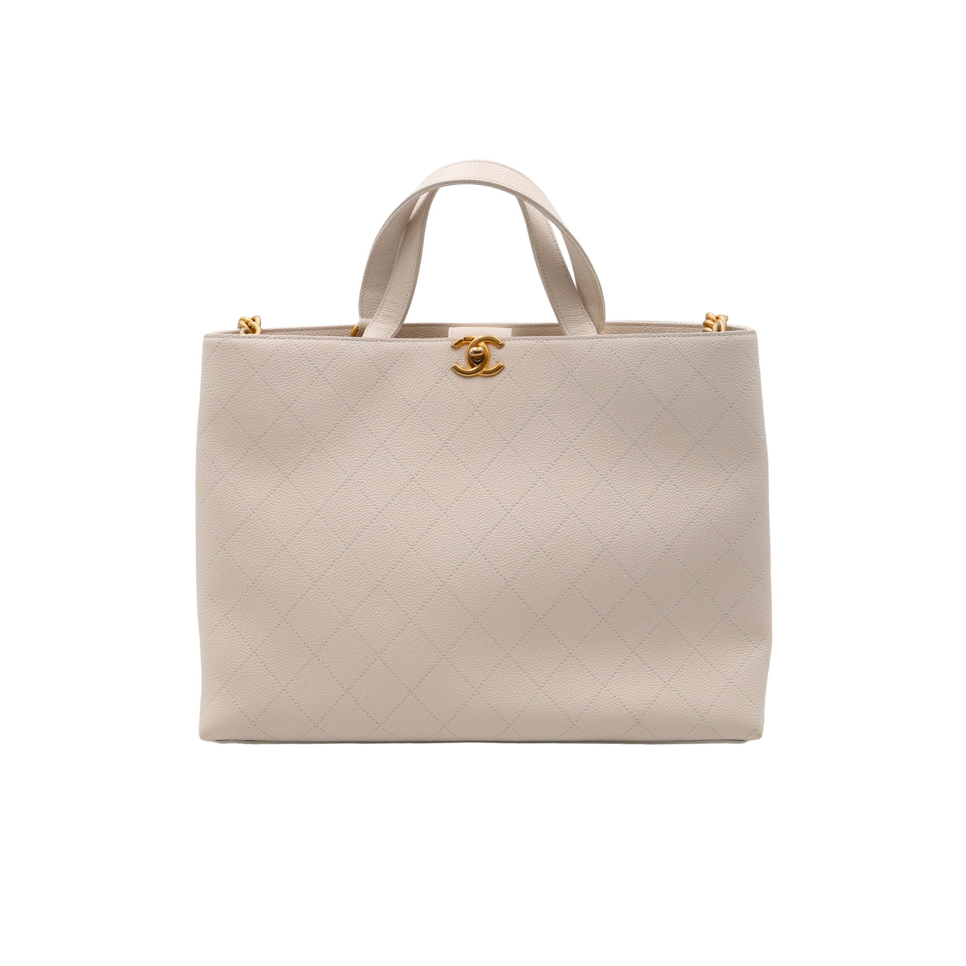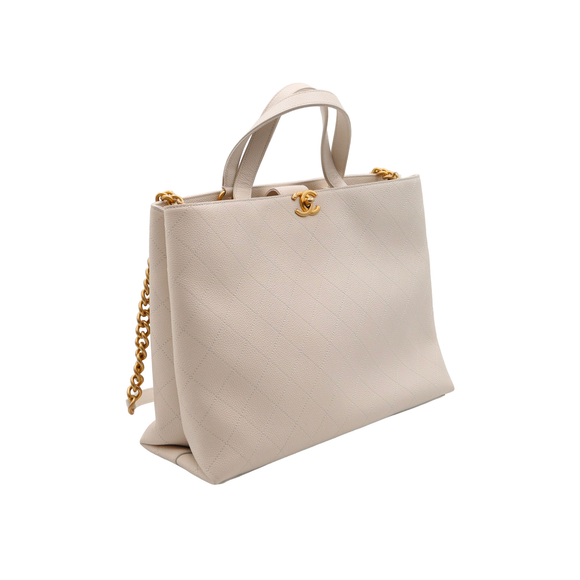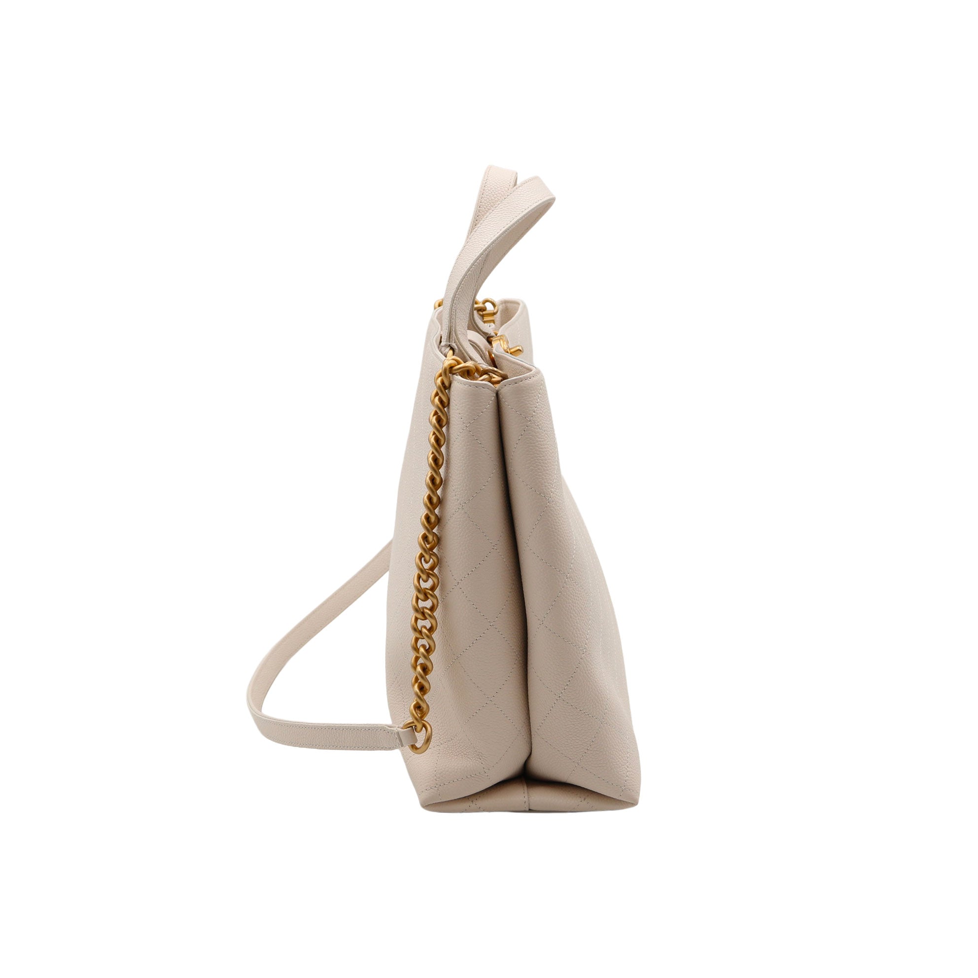 CHANEL Cabas Coco en cuir caviar craie et métal doré
