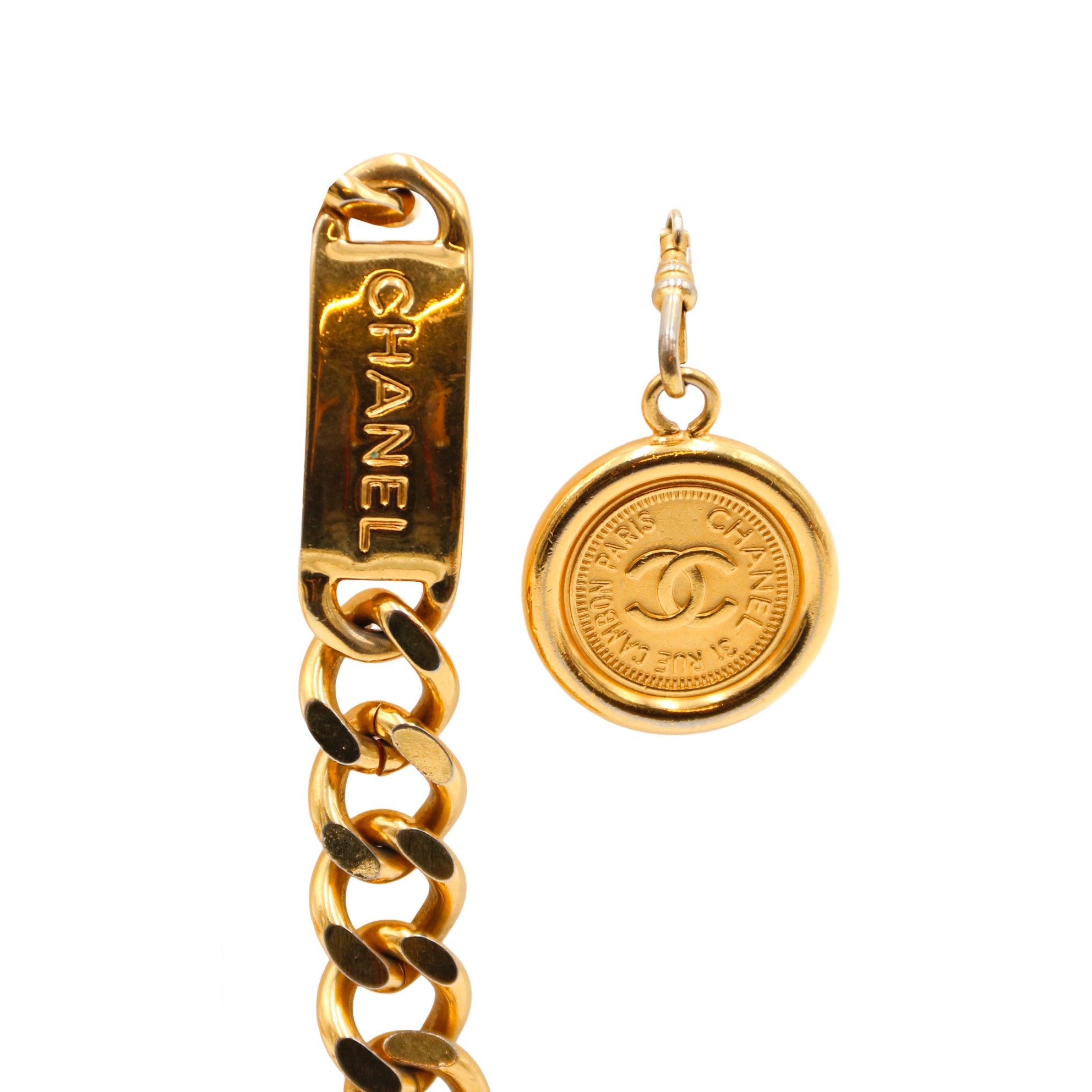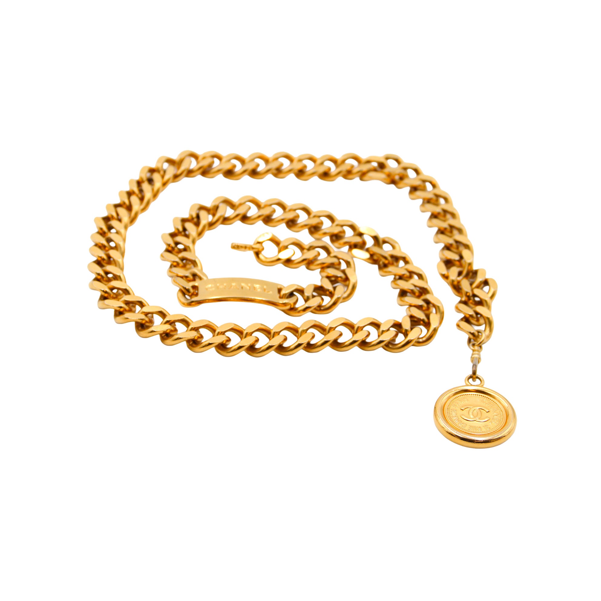 CHANEL – Ceinture chaîne vintage 1994 en métal doré avec médaille CC