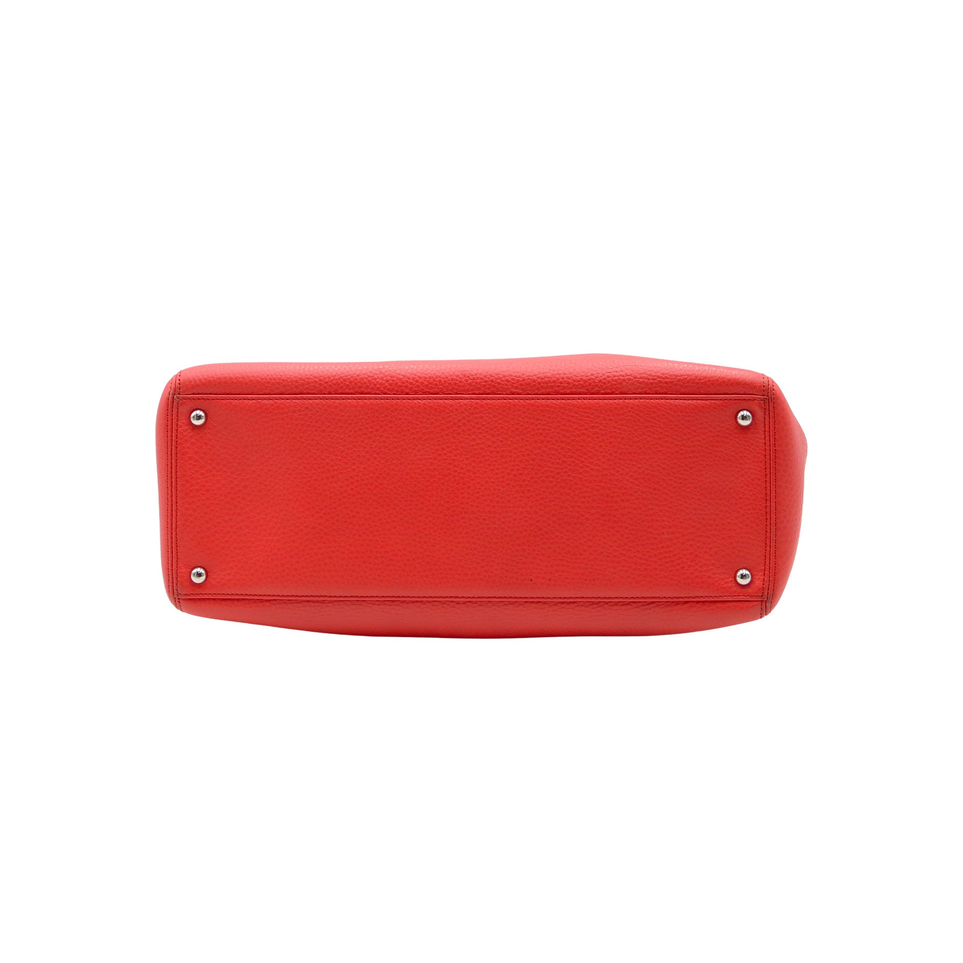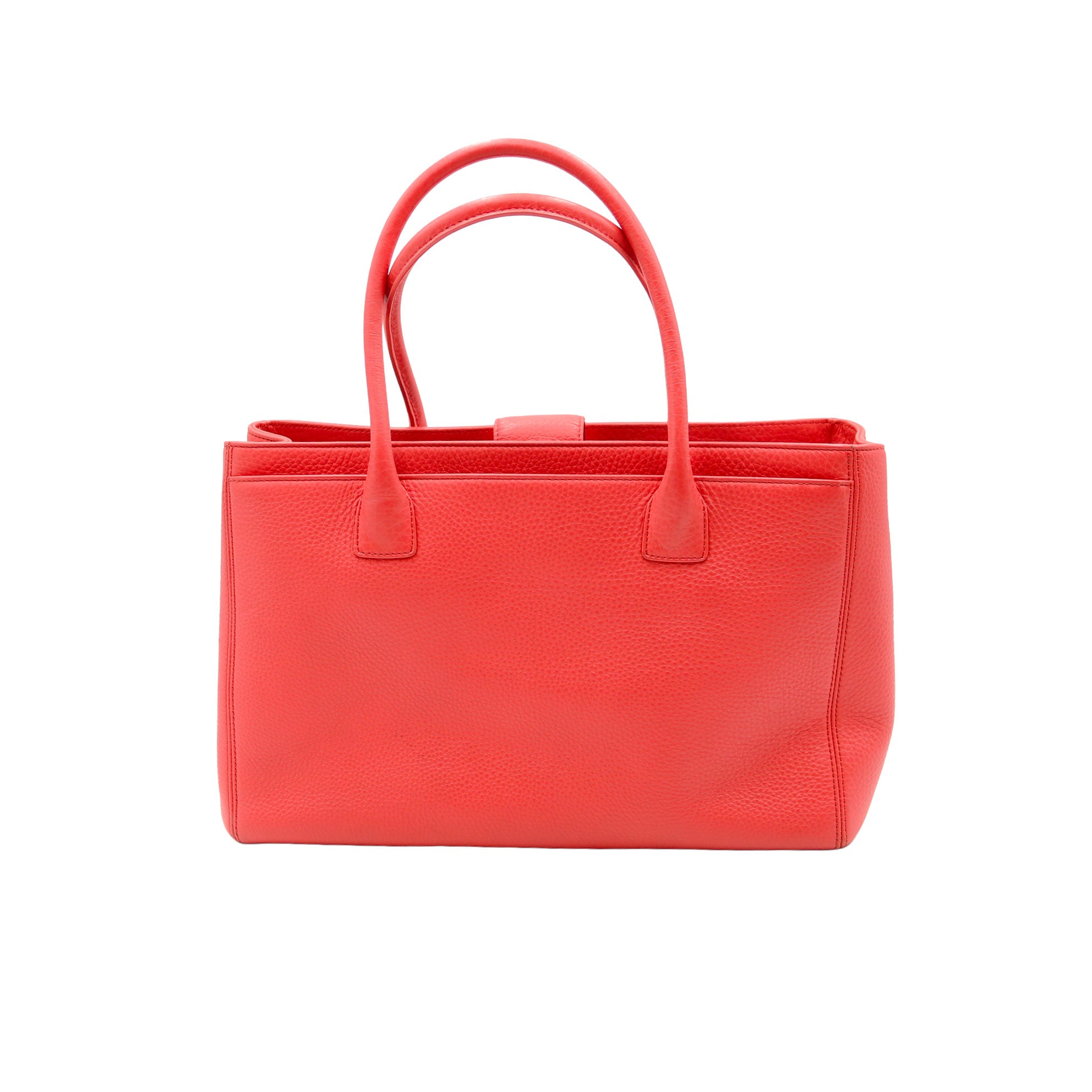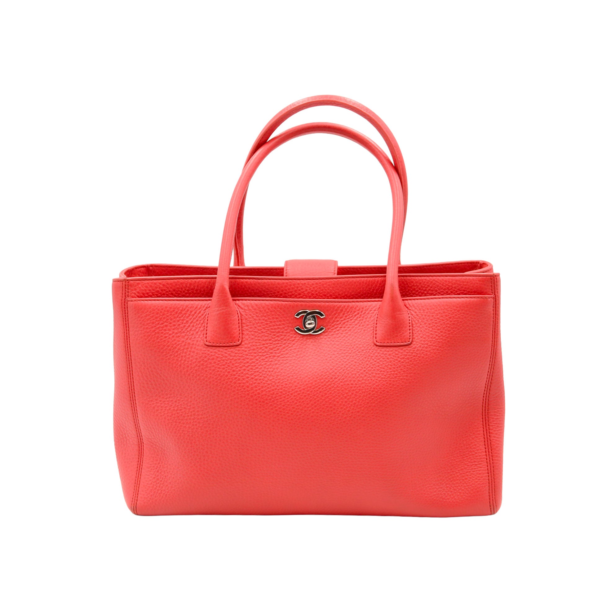 CHANEL Executive Cerf Tote en cuir grainé corail et métal argenté