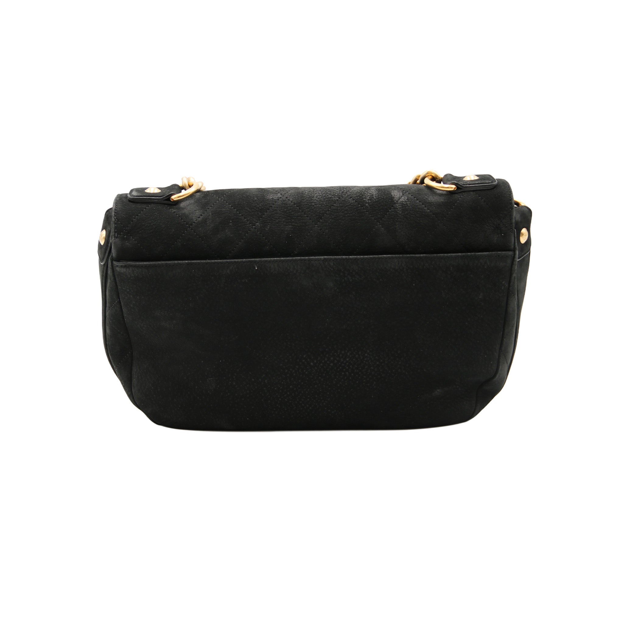 Confectionné en nubuck noir avec la signature chaîne épaisse dorée et le célèbre CC turnlock.