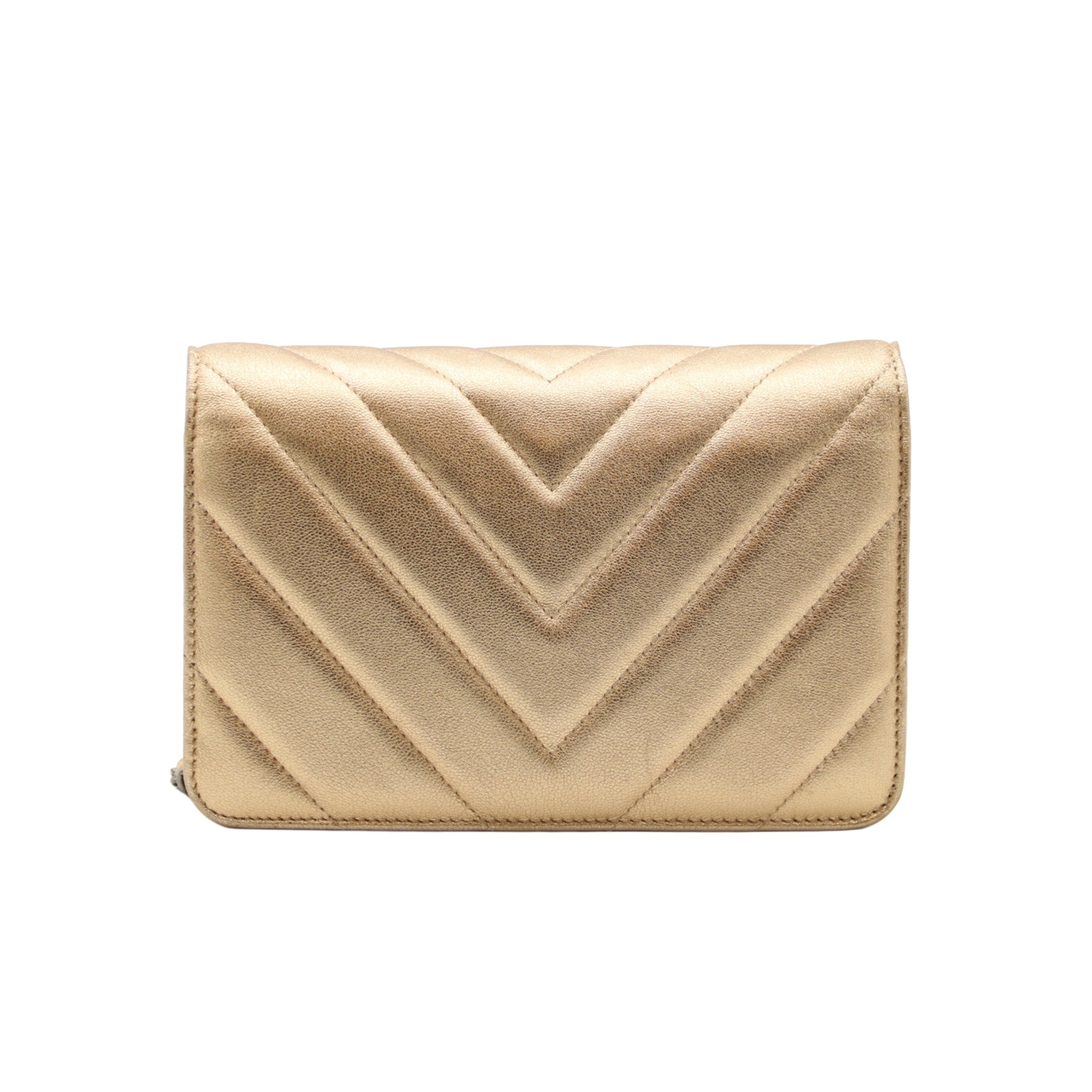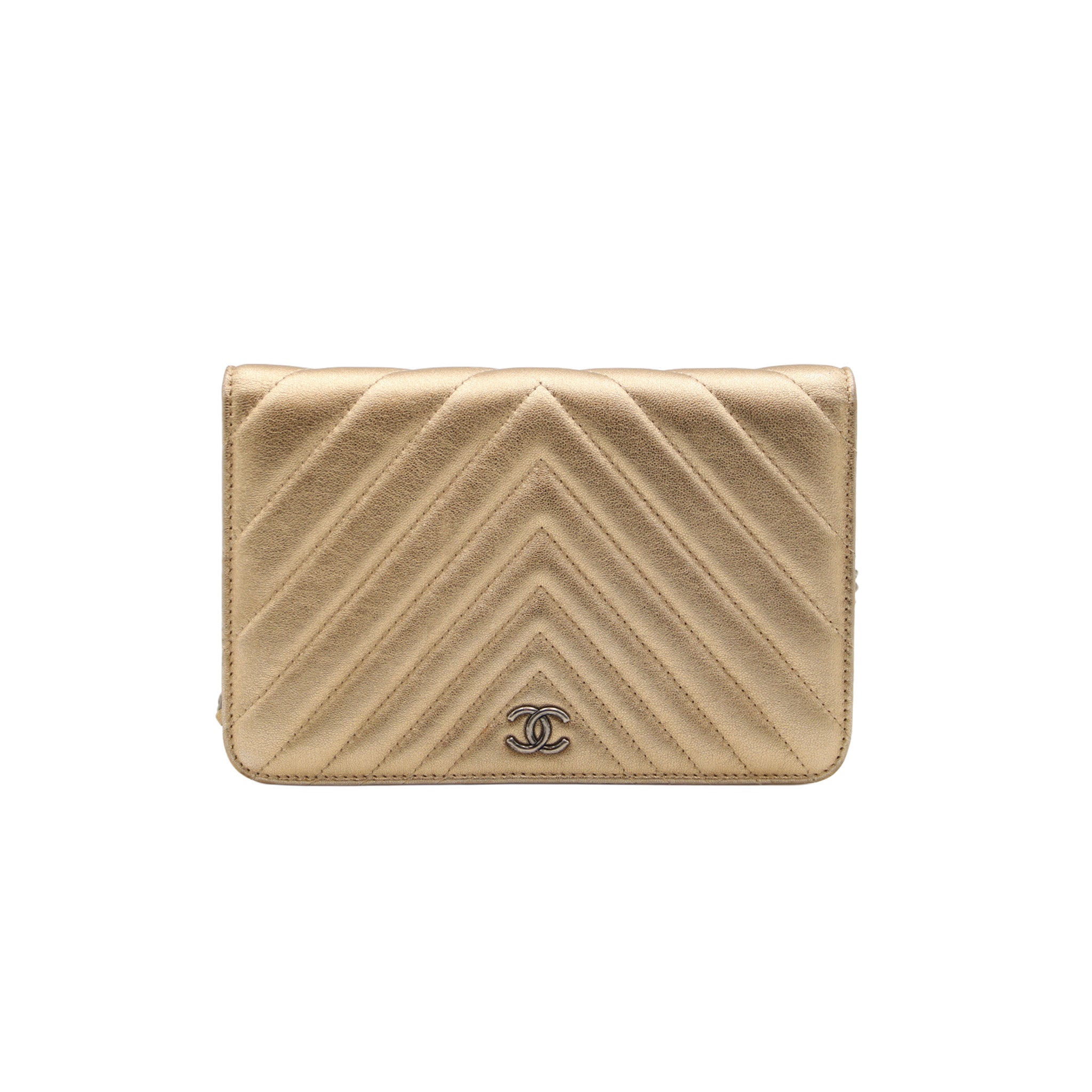 CHANEL – Wallet On Chain (WOC) en cuir d’agneau chevron doré