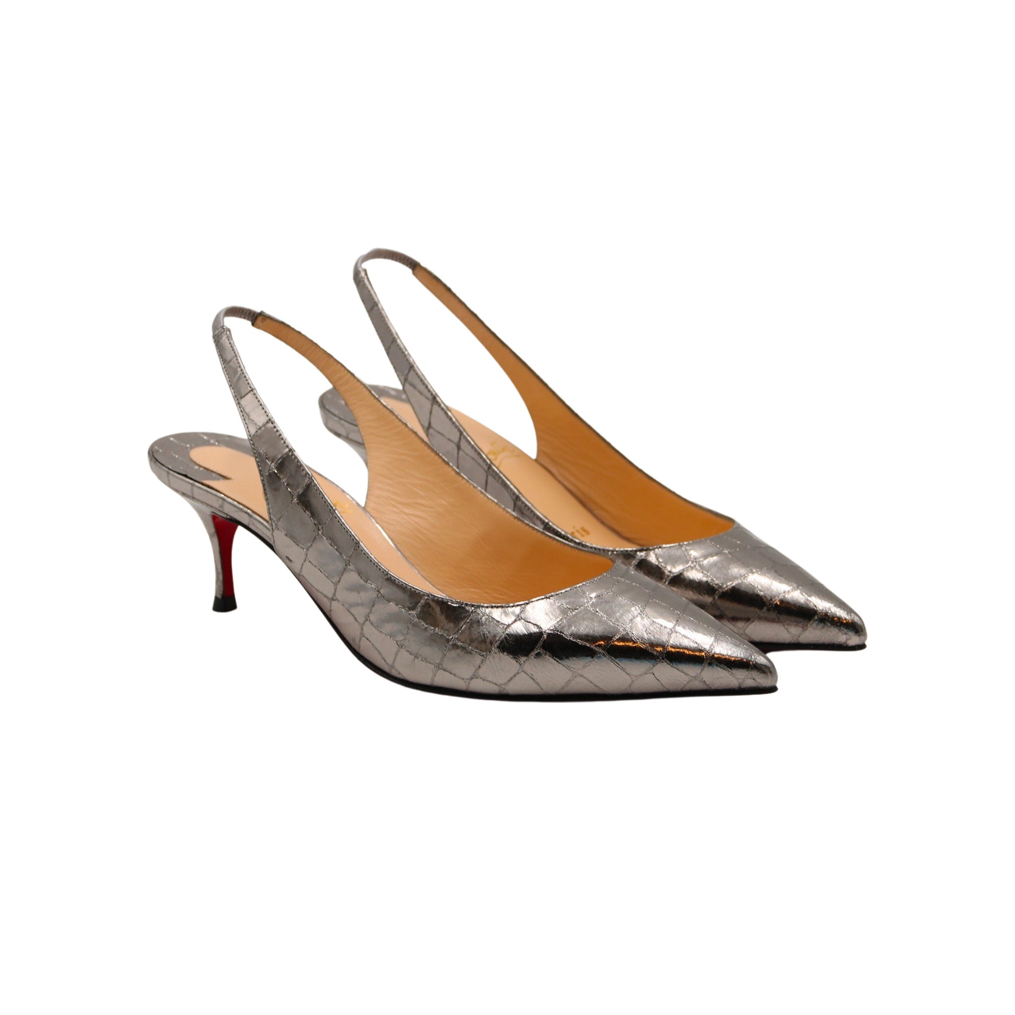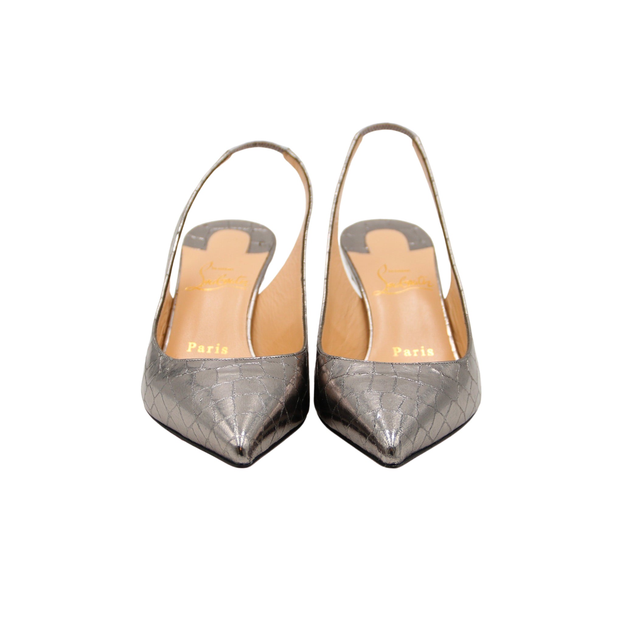 CHRISTIAN LOUBOUTIN – Slingback effet python métallisé – Argent