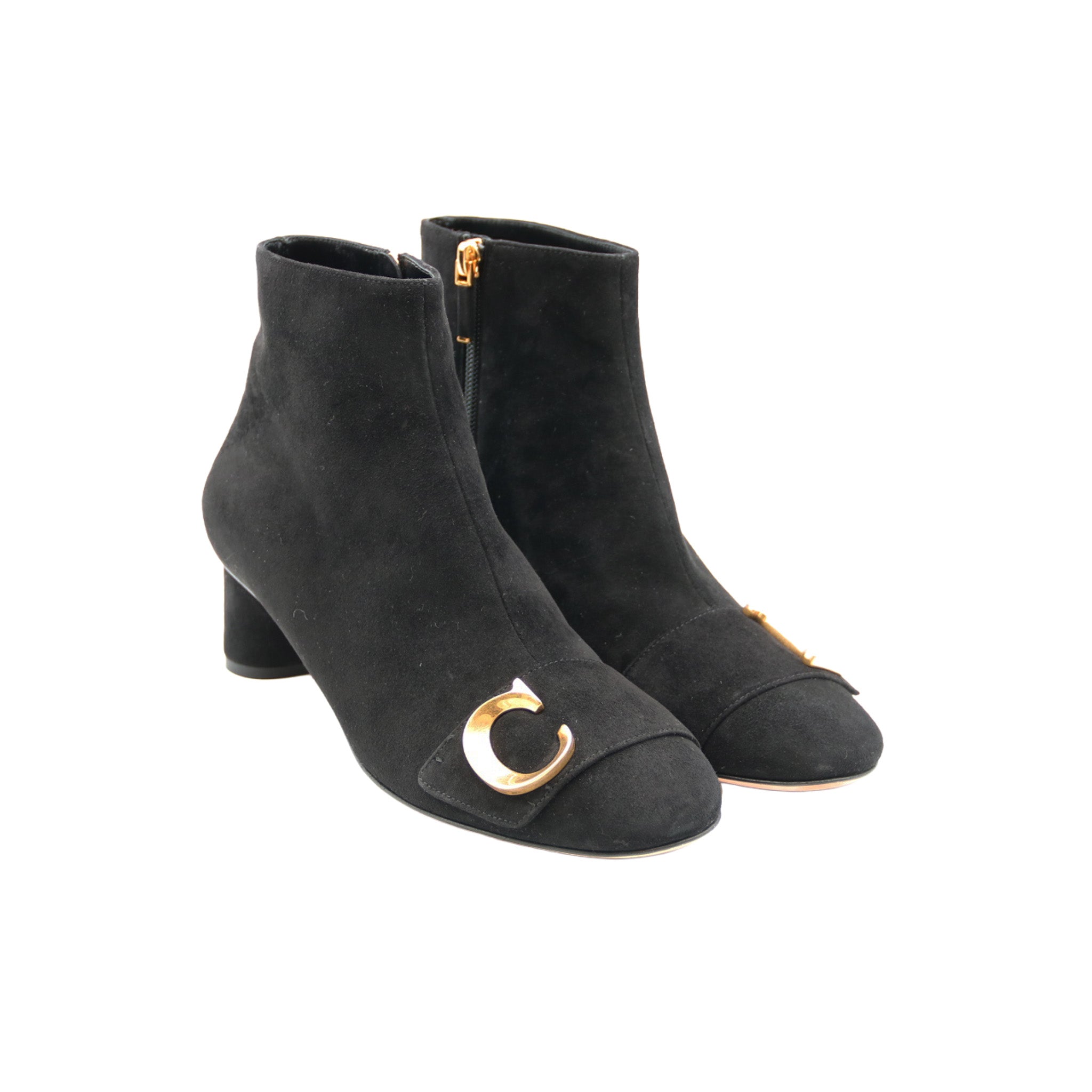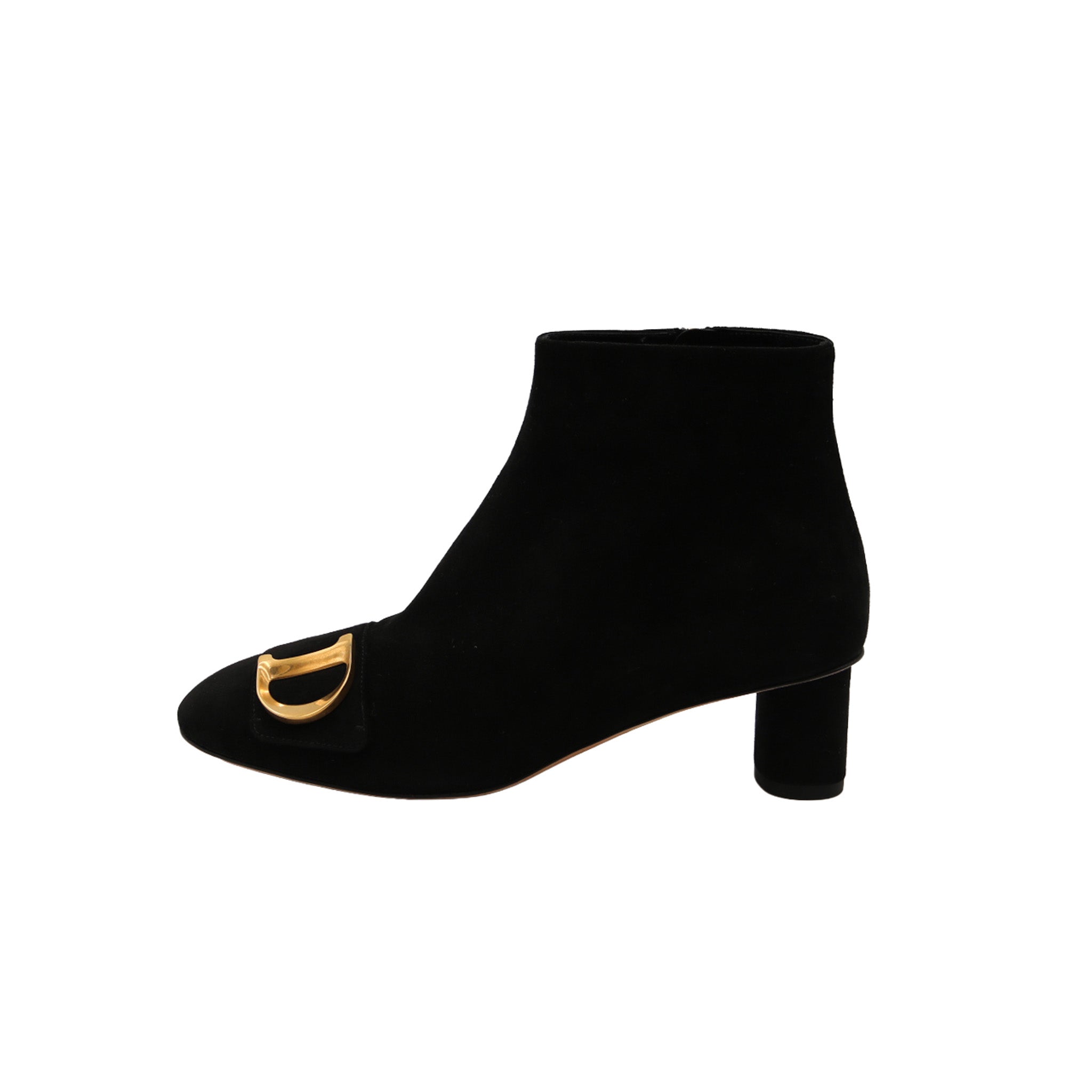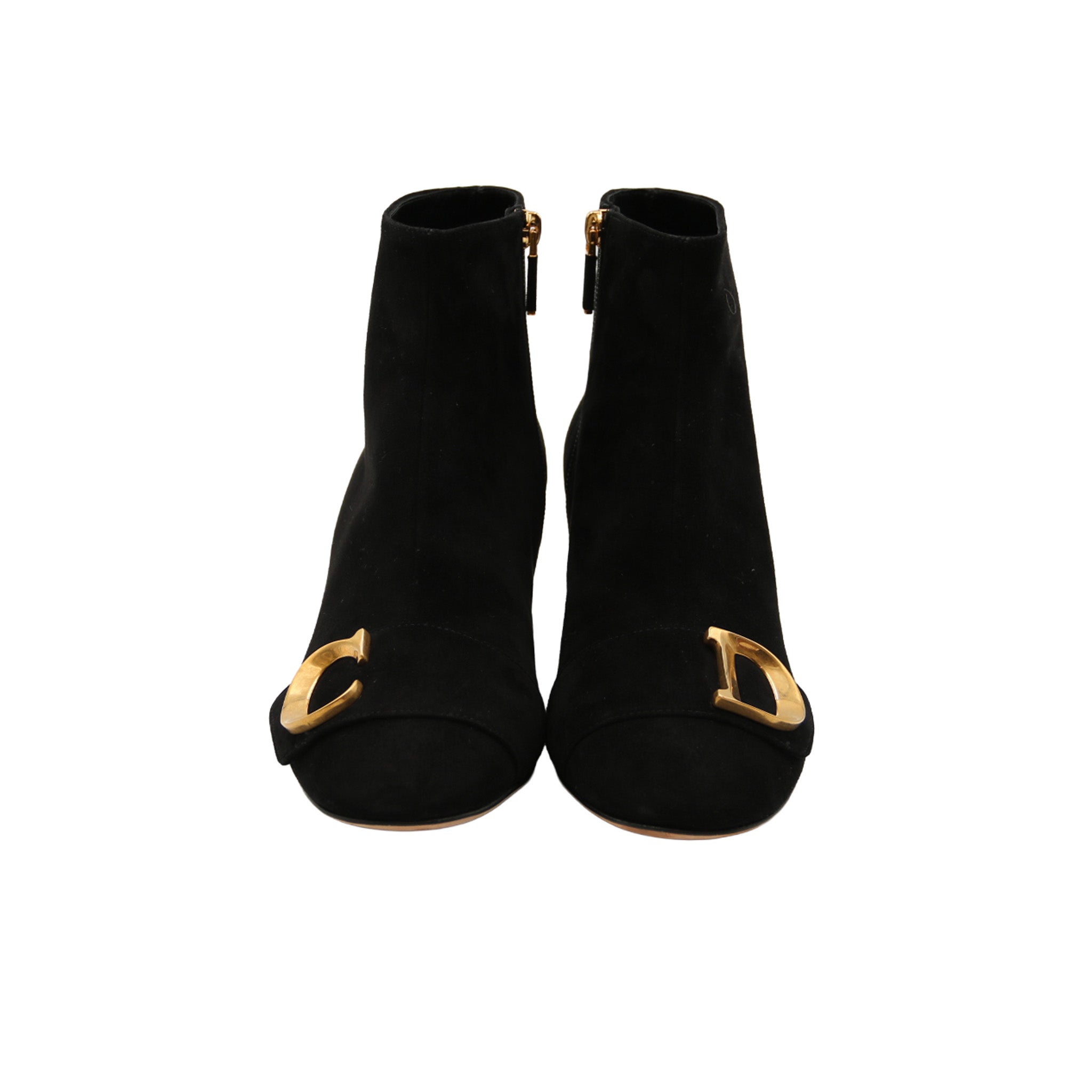 DIOR – Bottines à talon “CD” – Daim noir & finition dorée