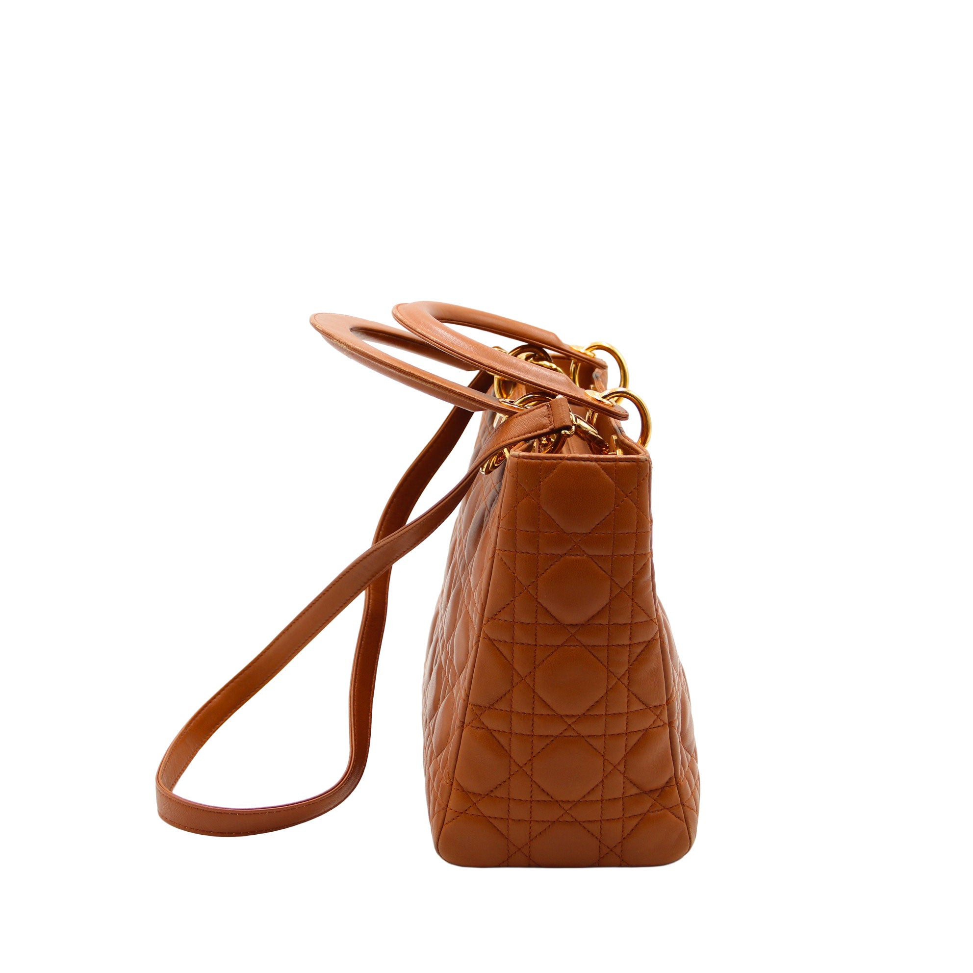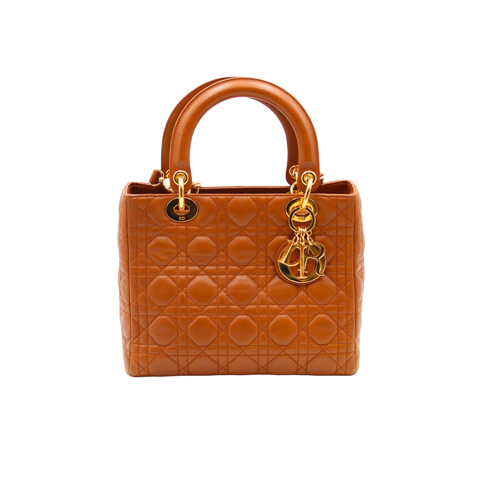 DIOR Lady Dior Medium en cuir cannage caramel et métal doré
