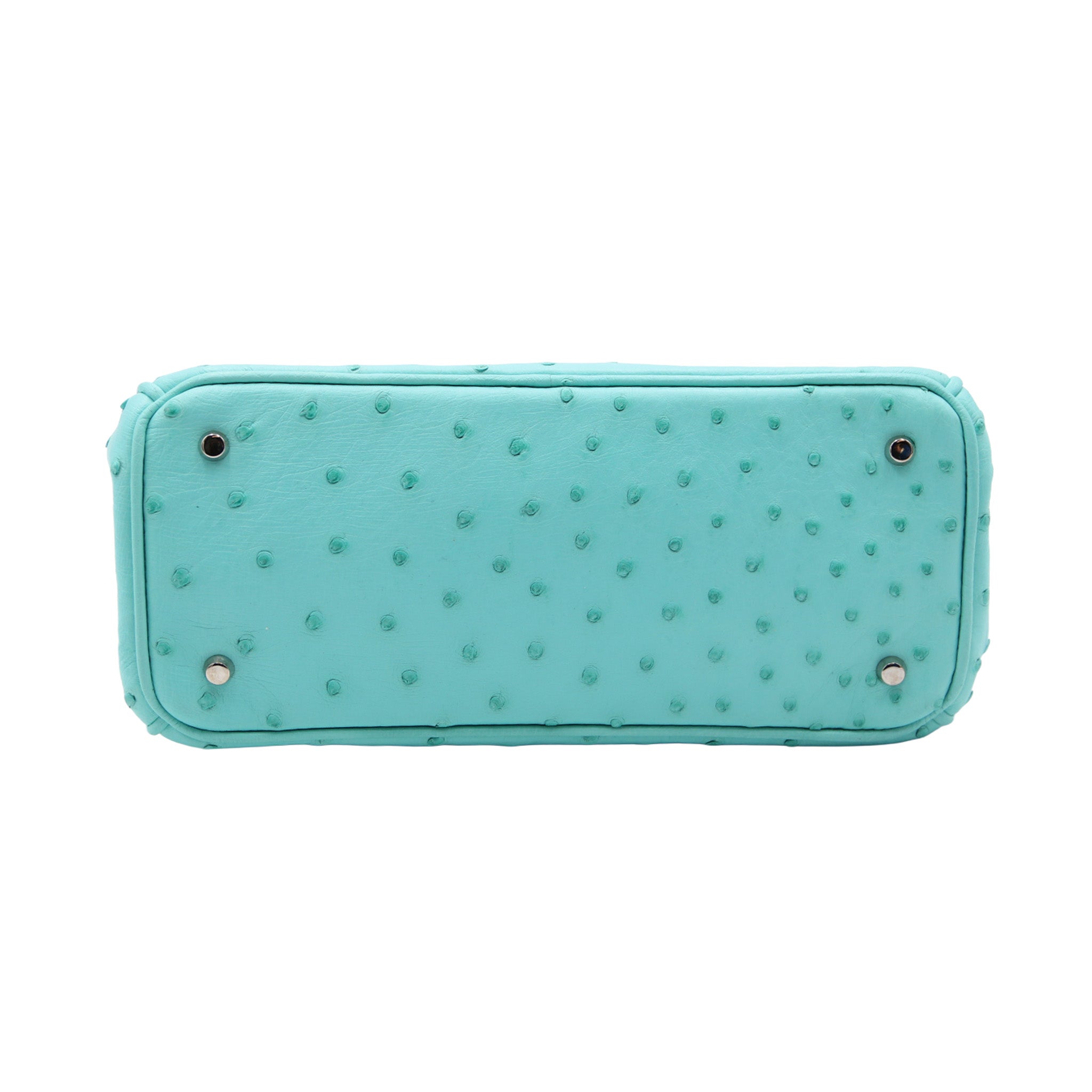 Pièce d’exception signée Dior, ce Mini Diorrissimo en véritable cuir d’autruche se distingue par son duo de couleurs émeraude et turquoise, à la fois rare et très recherché. Son format mini élégant est sublimé par les charms DIOR argentés, emblématiques de la Maison.