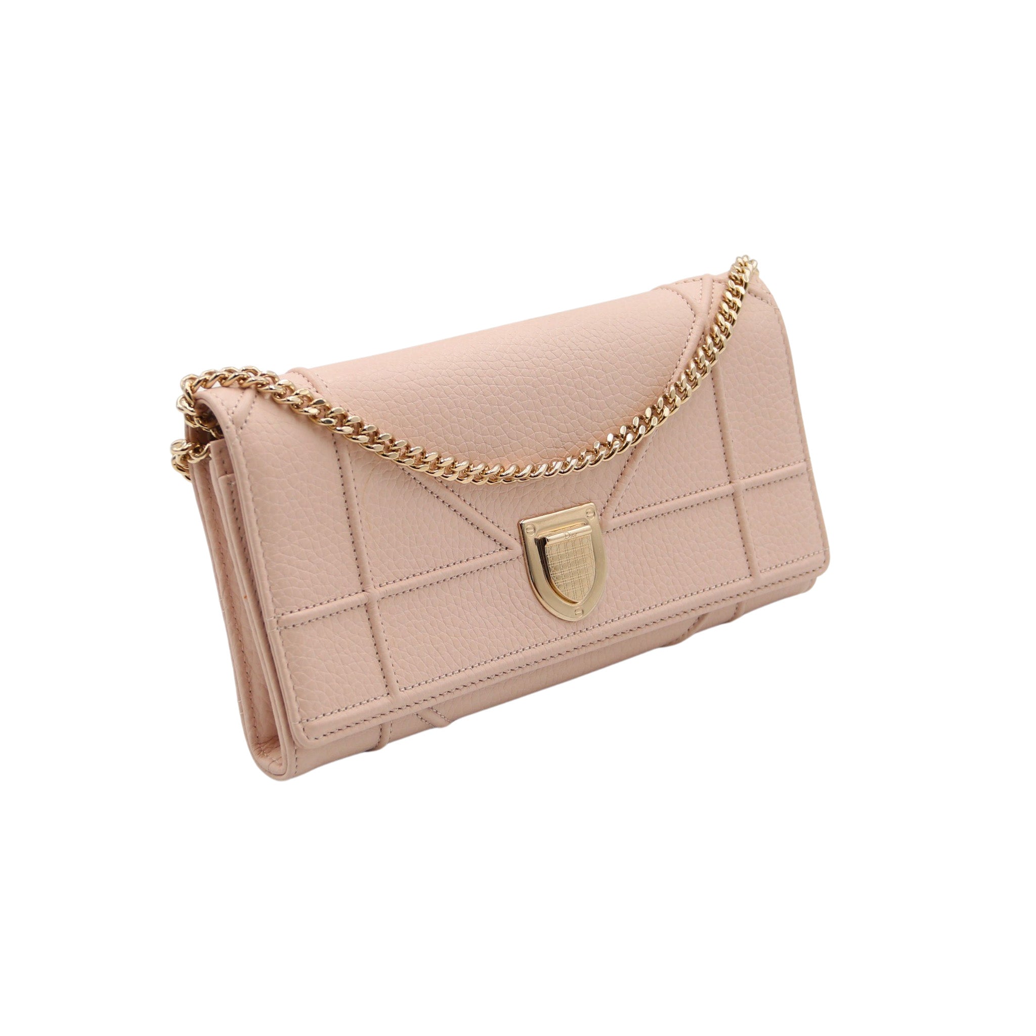 DIOR – Pochette Diorama Wallet on Chain – Cuir grainé rose poudré