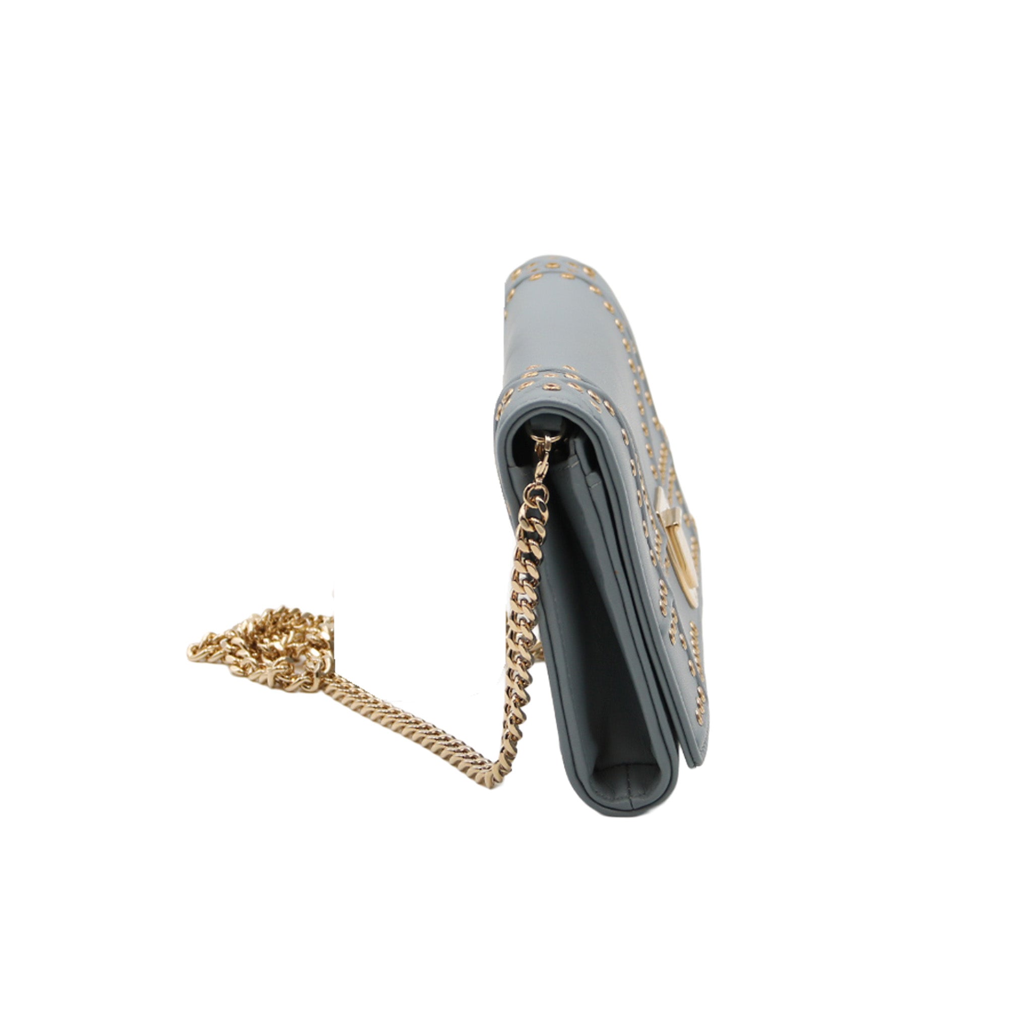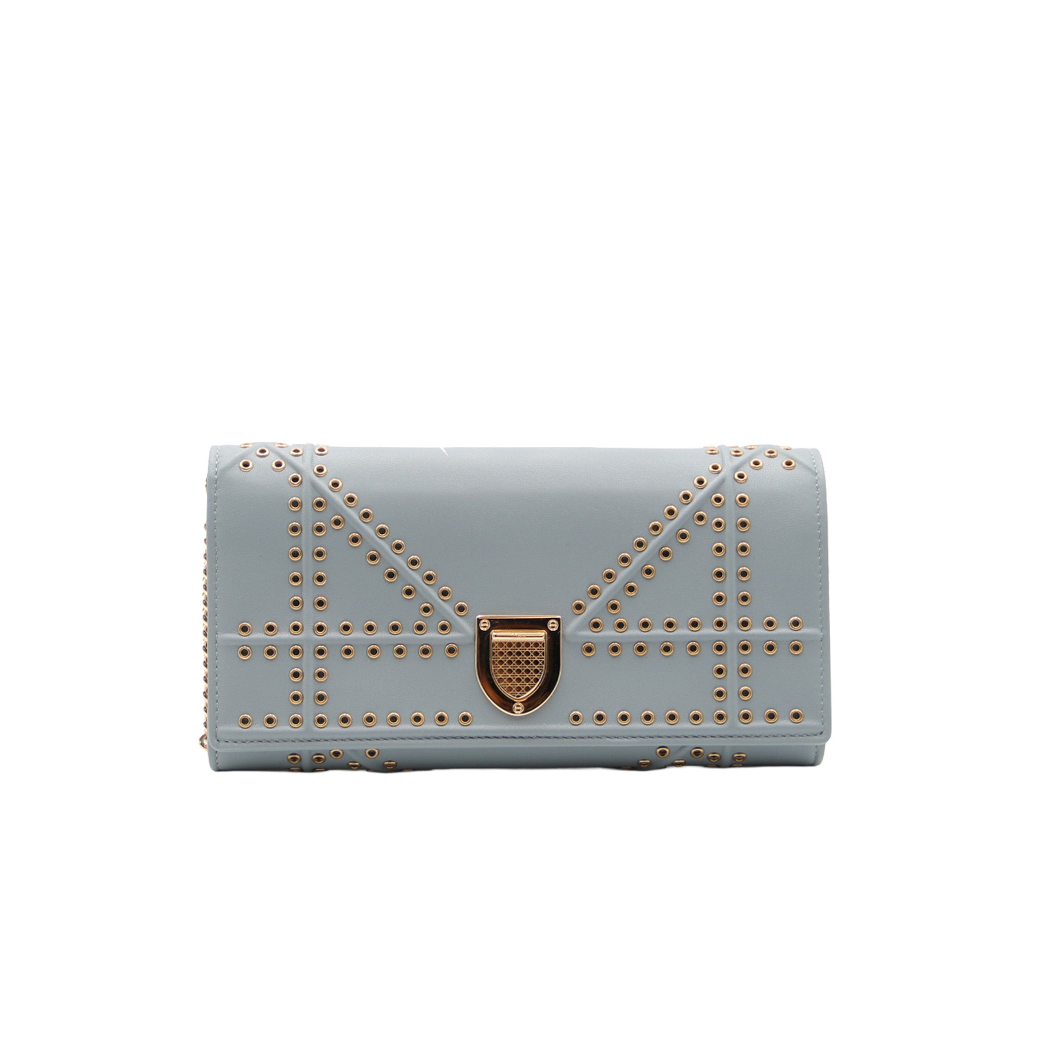 DIOR – Pochette Diorama Wallet on Chain – cuir gris perle à œillets