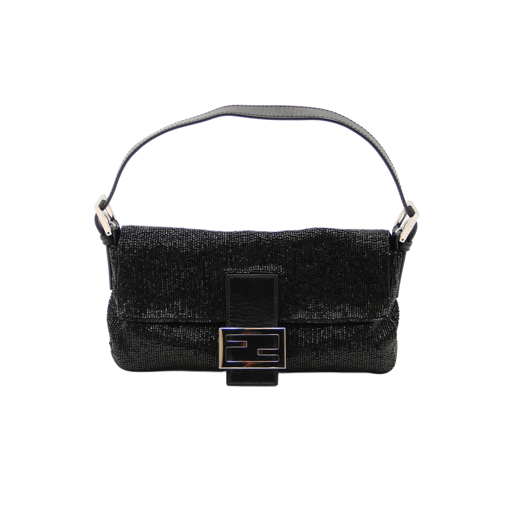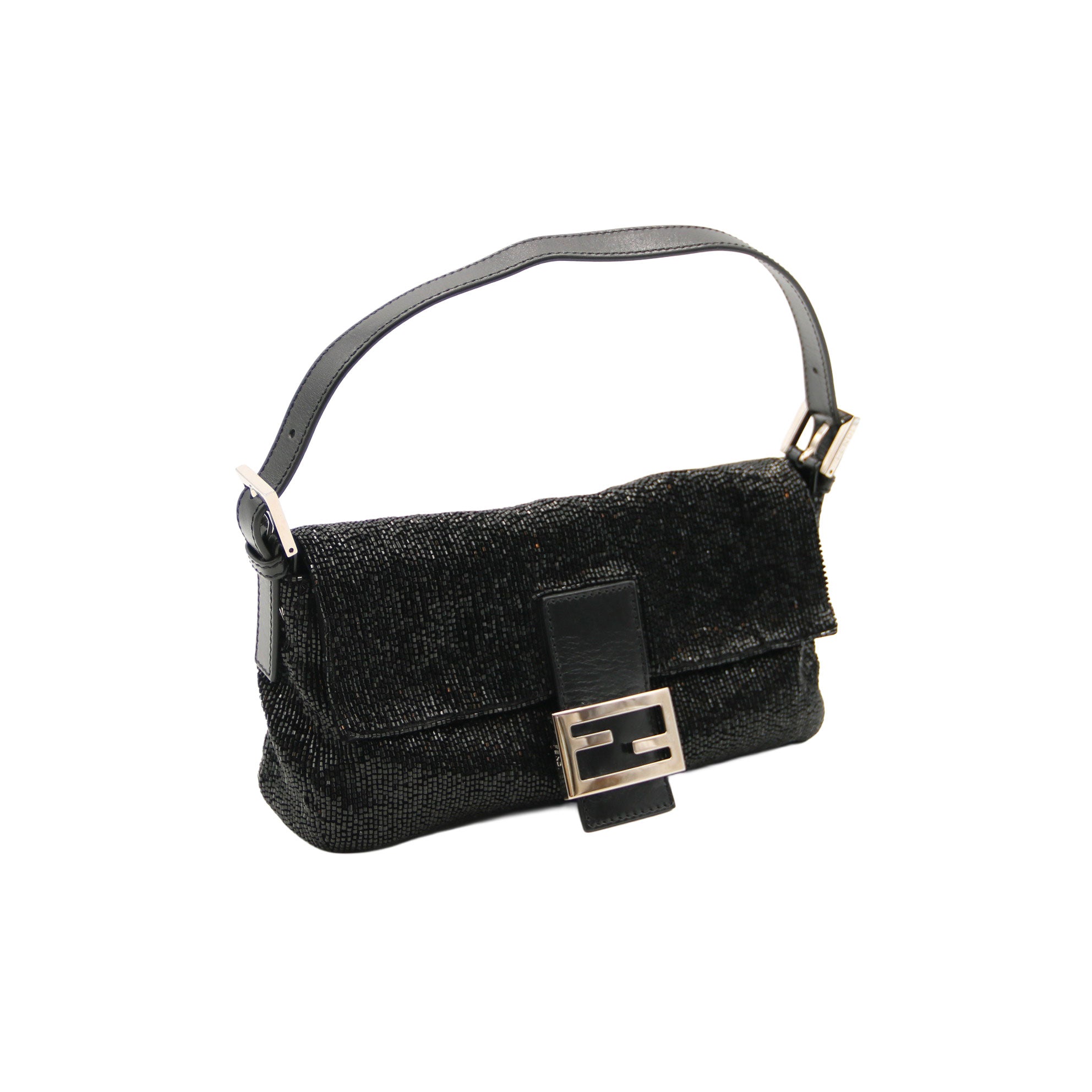 FENDI Sac Baguette Beaded noir avec miroir « Baguette Mania »