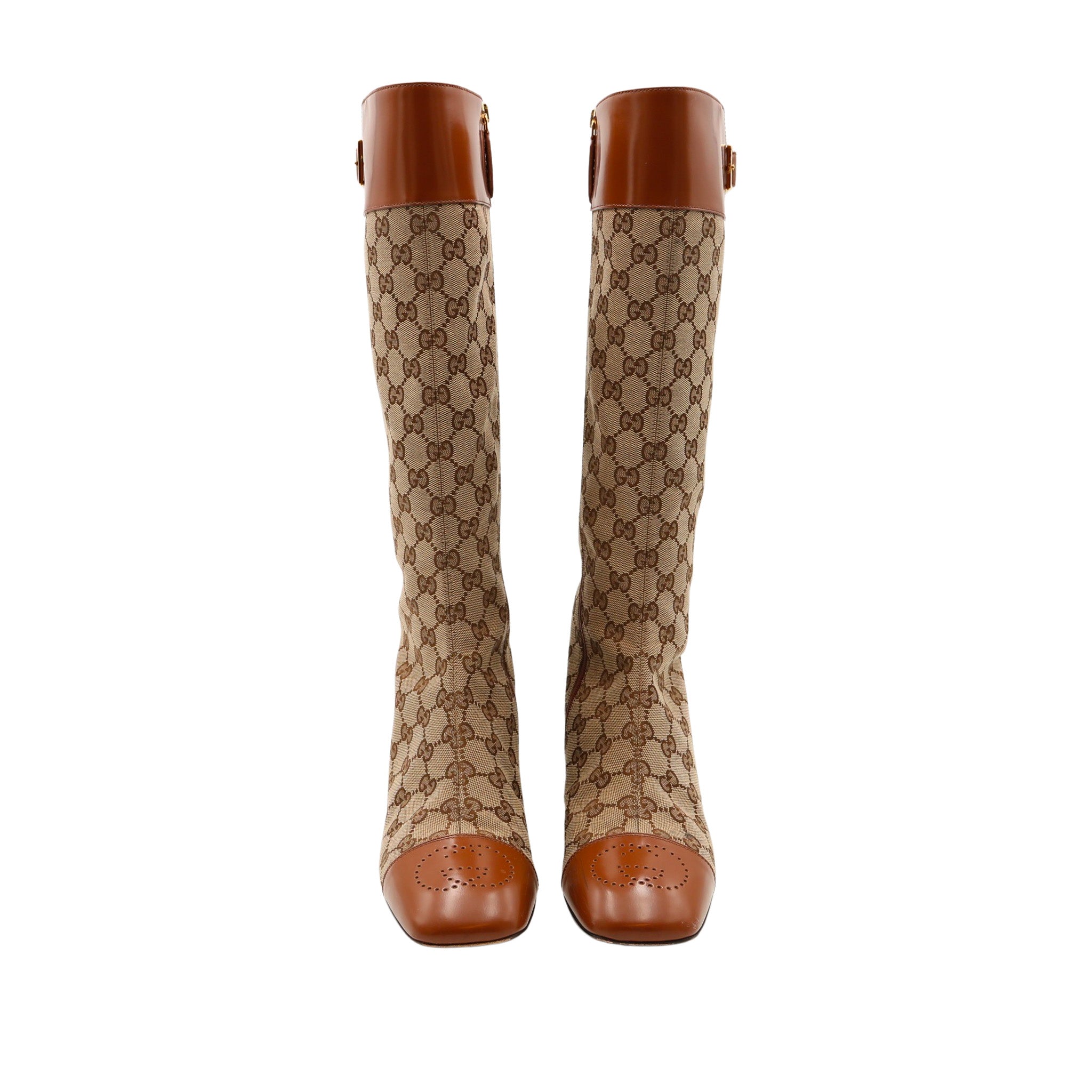 GUCCI – Bottes monogram GG & cuir – Beige / camel