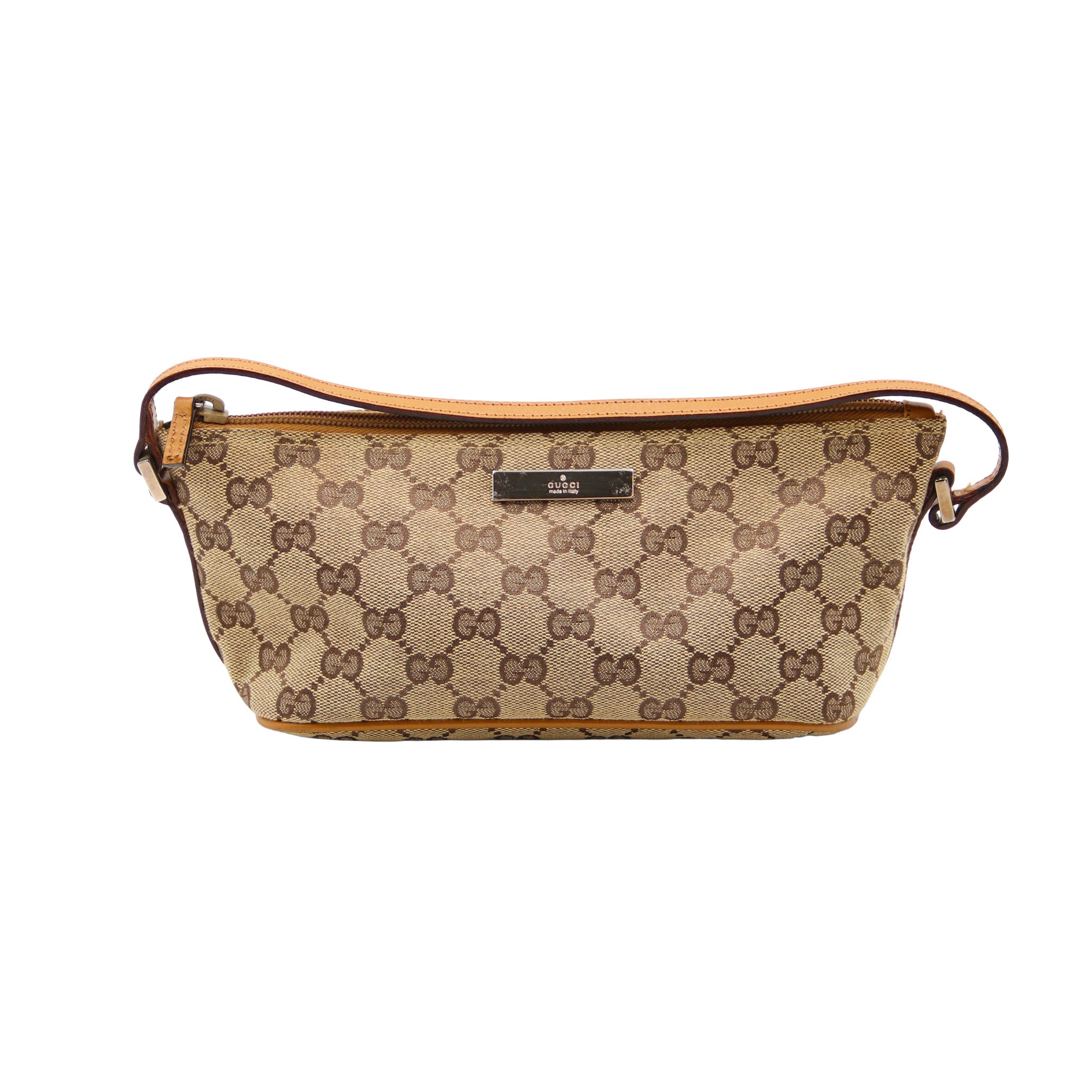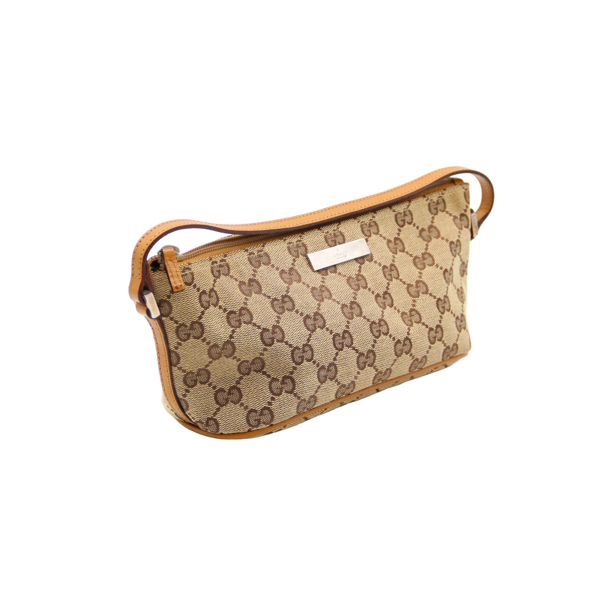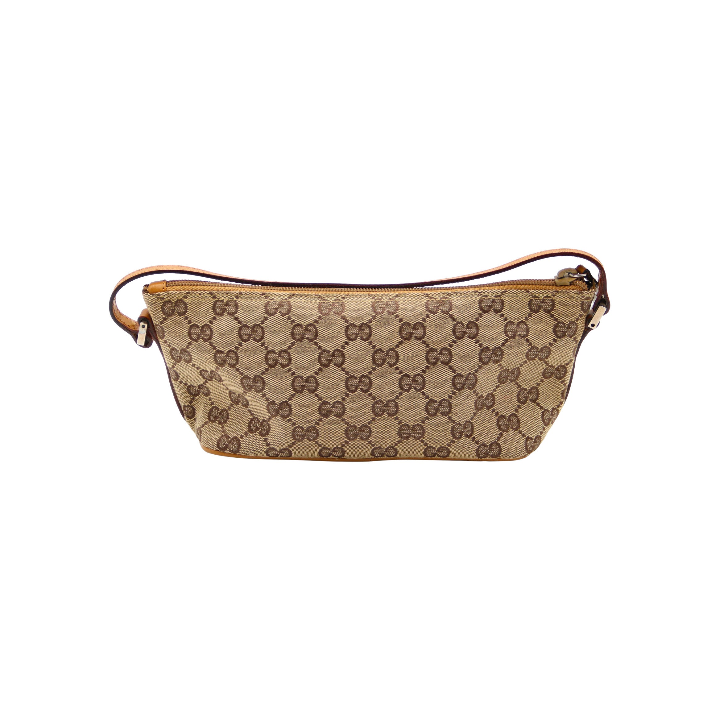 GUCCI Pochette GG Boat Toile monogramme beige et cuir camel