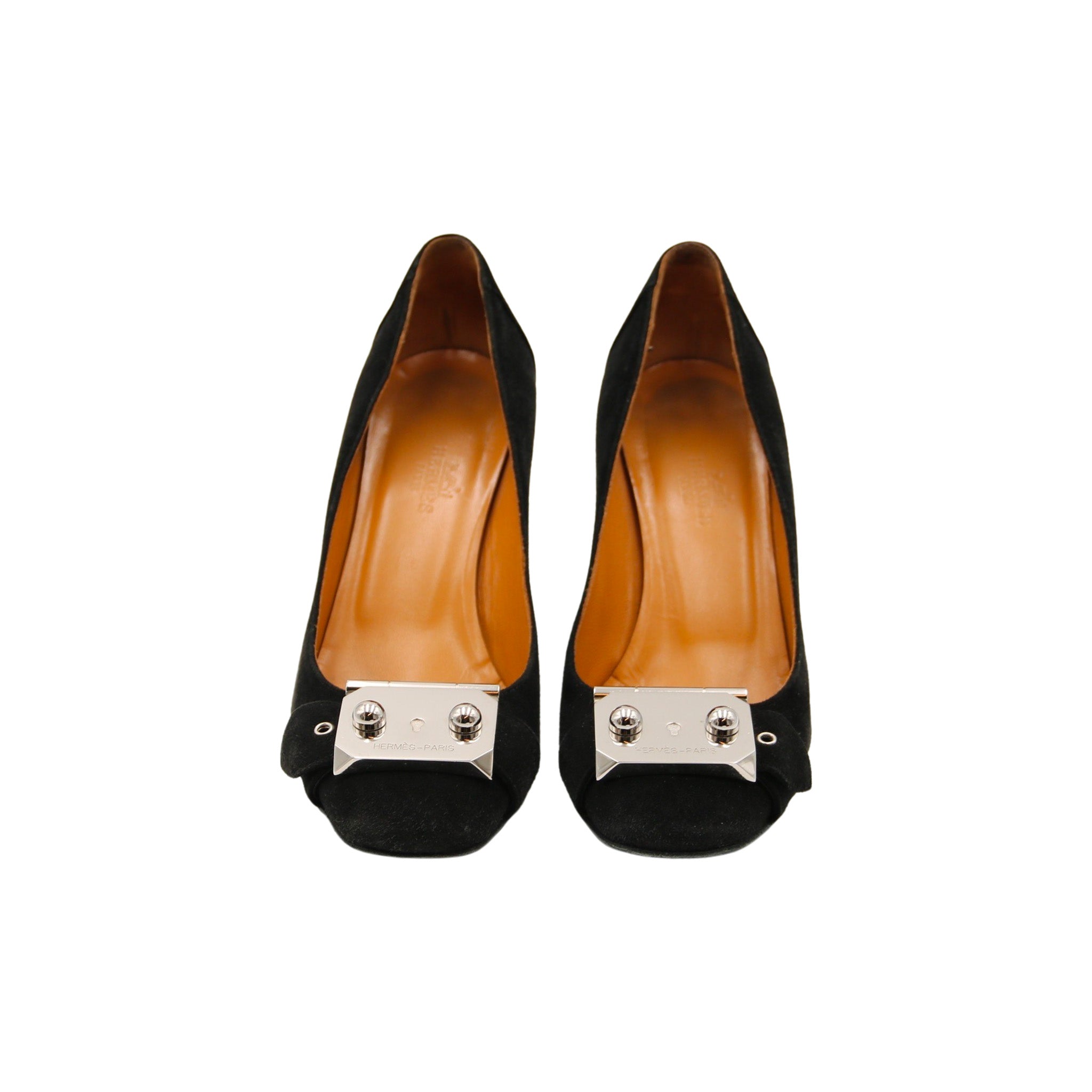 HERMÈS – Escarpin “H-Buckle” suédé – Noir