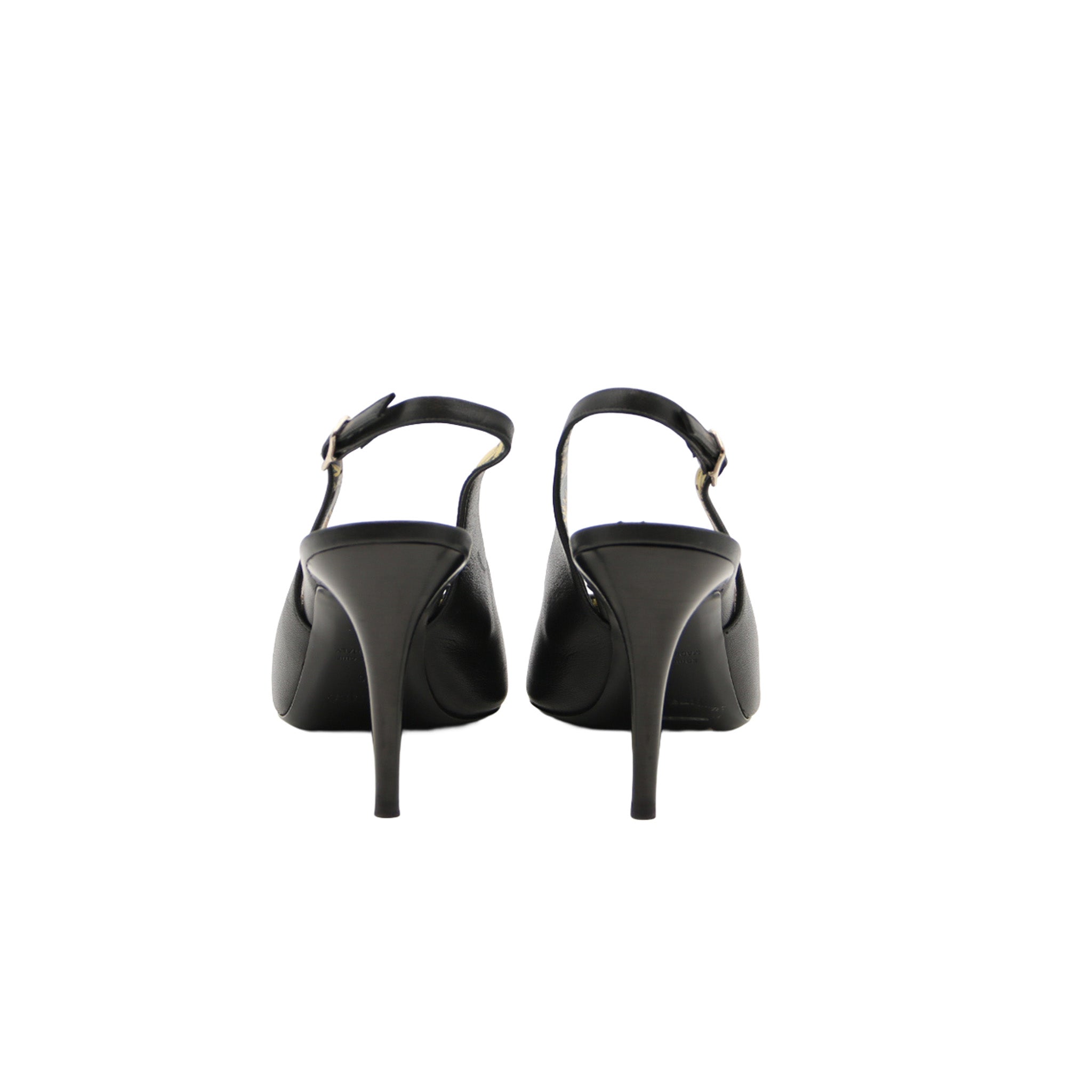 Ces escarpins Hermès incarnent l’élégance intemporelle de la maison avec une silhouette épurée et féminine. Confectionnés en cuir lisse noir, ils se distinguent par leur forme slingback à bride arrière et leur bout pointu raffiné. L’intérieur dévoile une semelle imprimée au motif graphique, apportant une touche subtilement originale à ce modèle chic. Un escarpin sophistiqué, idéal pour une tenue élégante de jour comme de soirée.