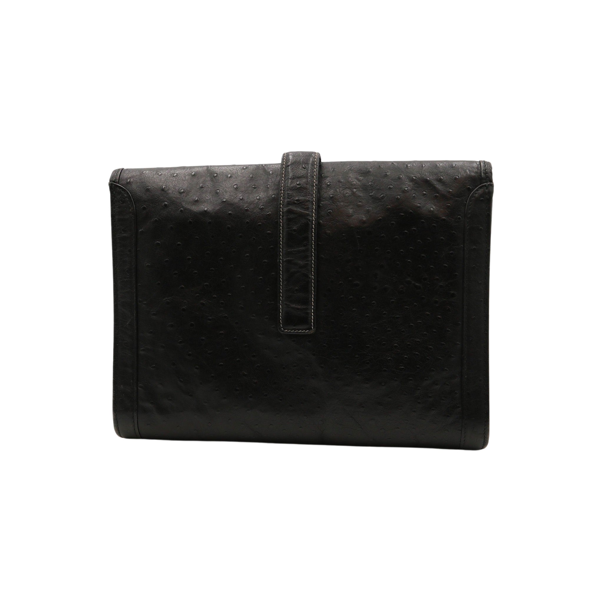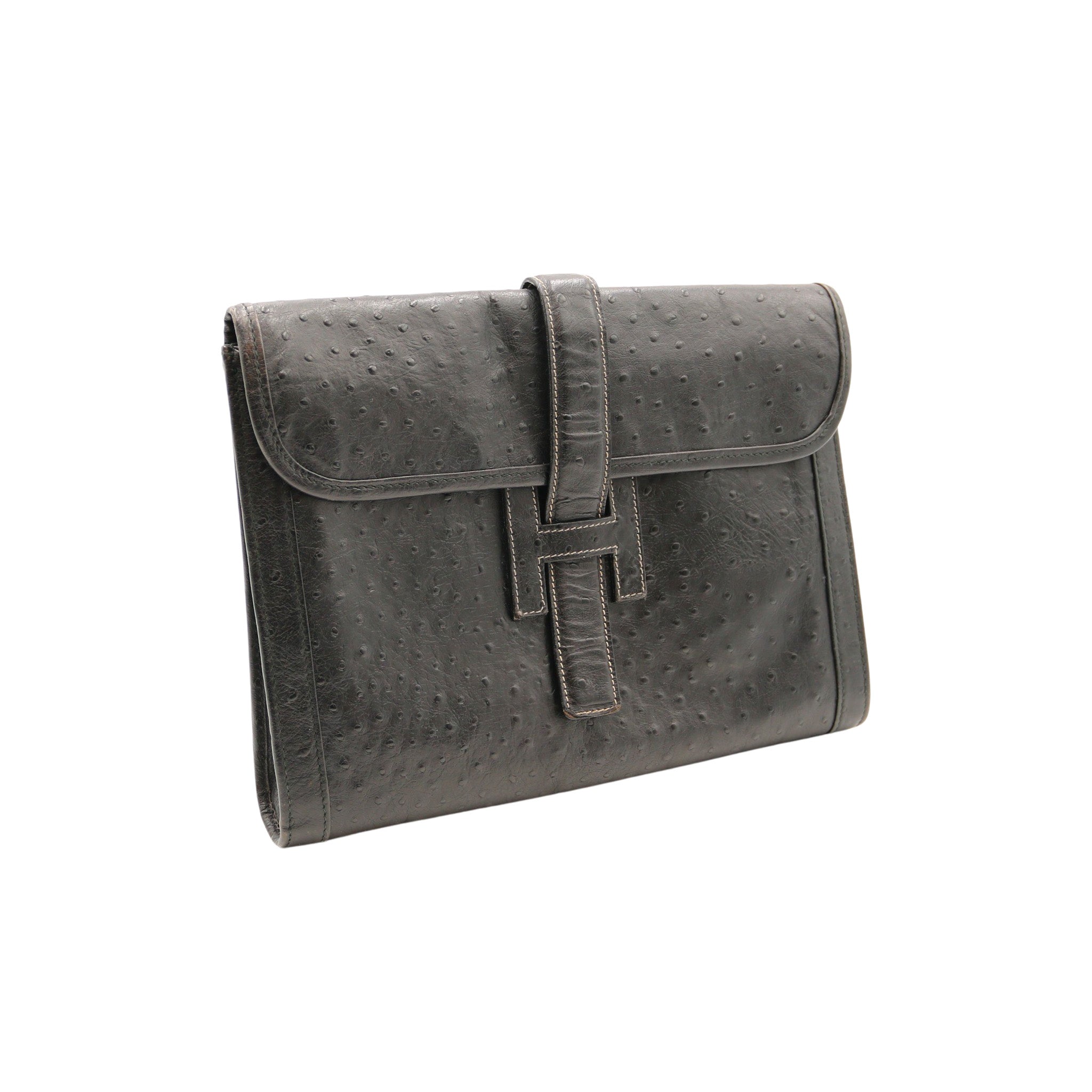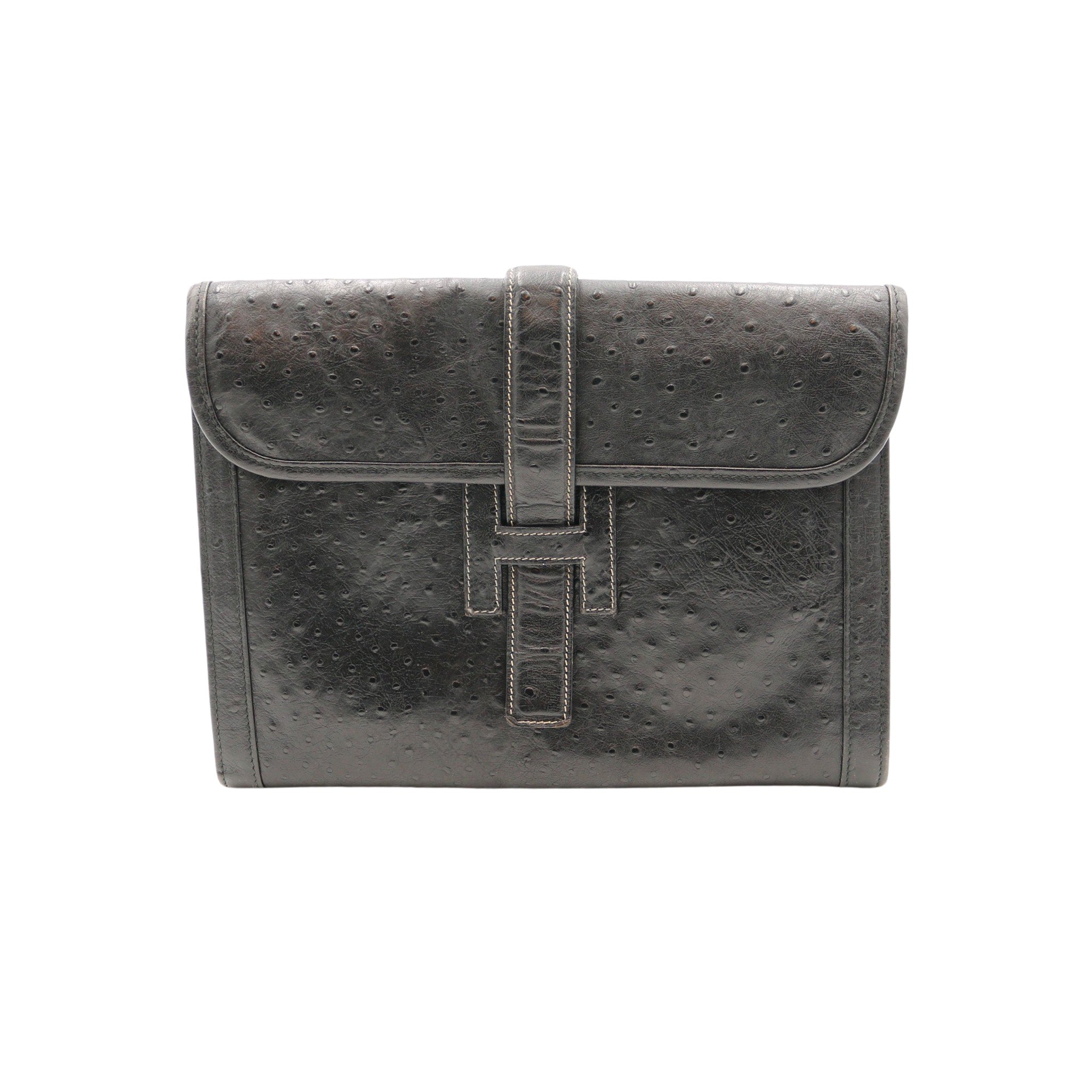 HERMÈS – Pochette Jige – Cuir d’autruche noir