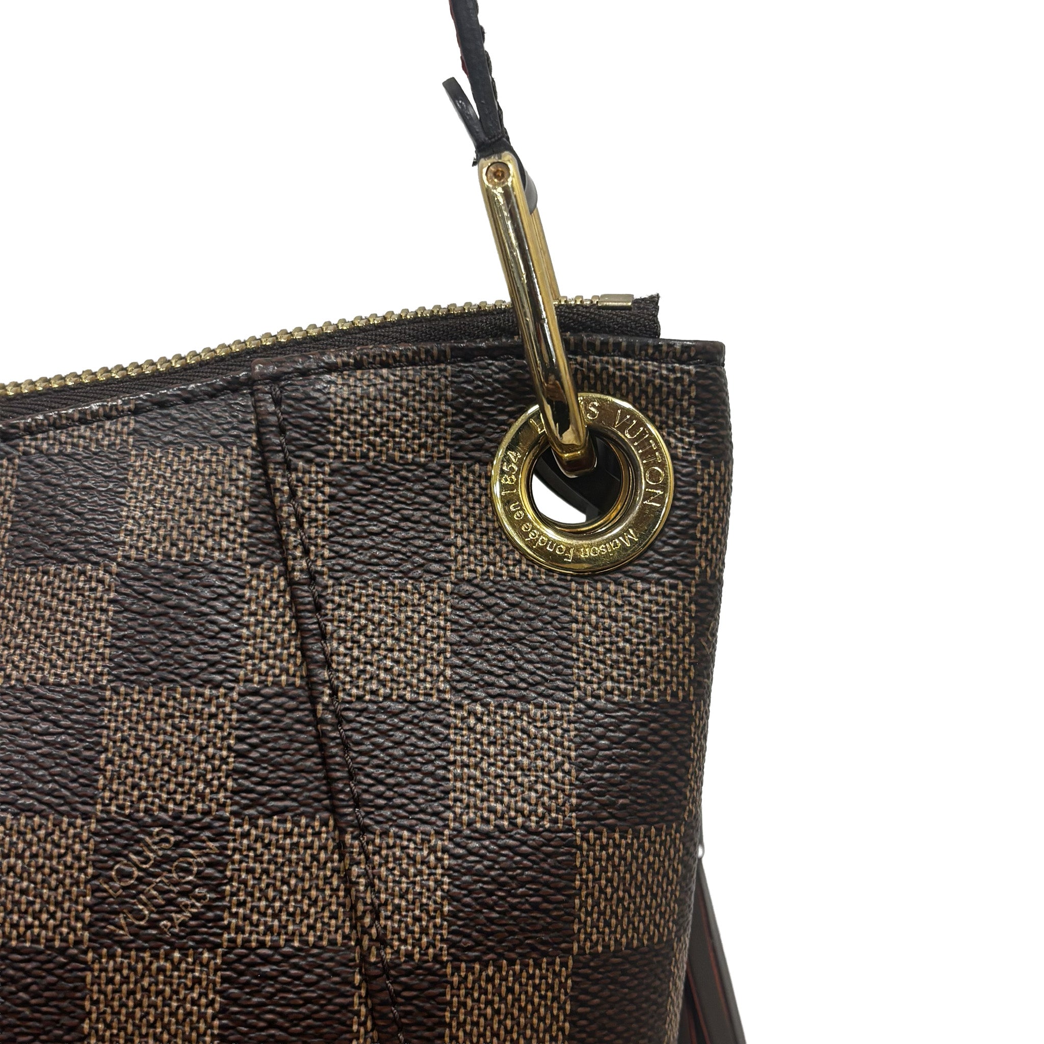 Ce sac en toile Damier Ébène de Louis Vuitton offre une silhouette bucket élégante et fonctionnelle. Sa toile damier emblématique, complétée par des finitions en cuir lisse et des œillets métalliques dorés, lui confère un style urbain chic et durable. Parfait pour un usage quotidien, il allie couture et praticité.