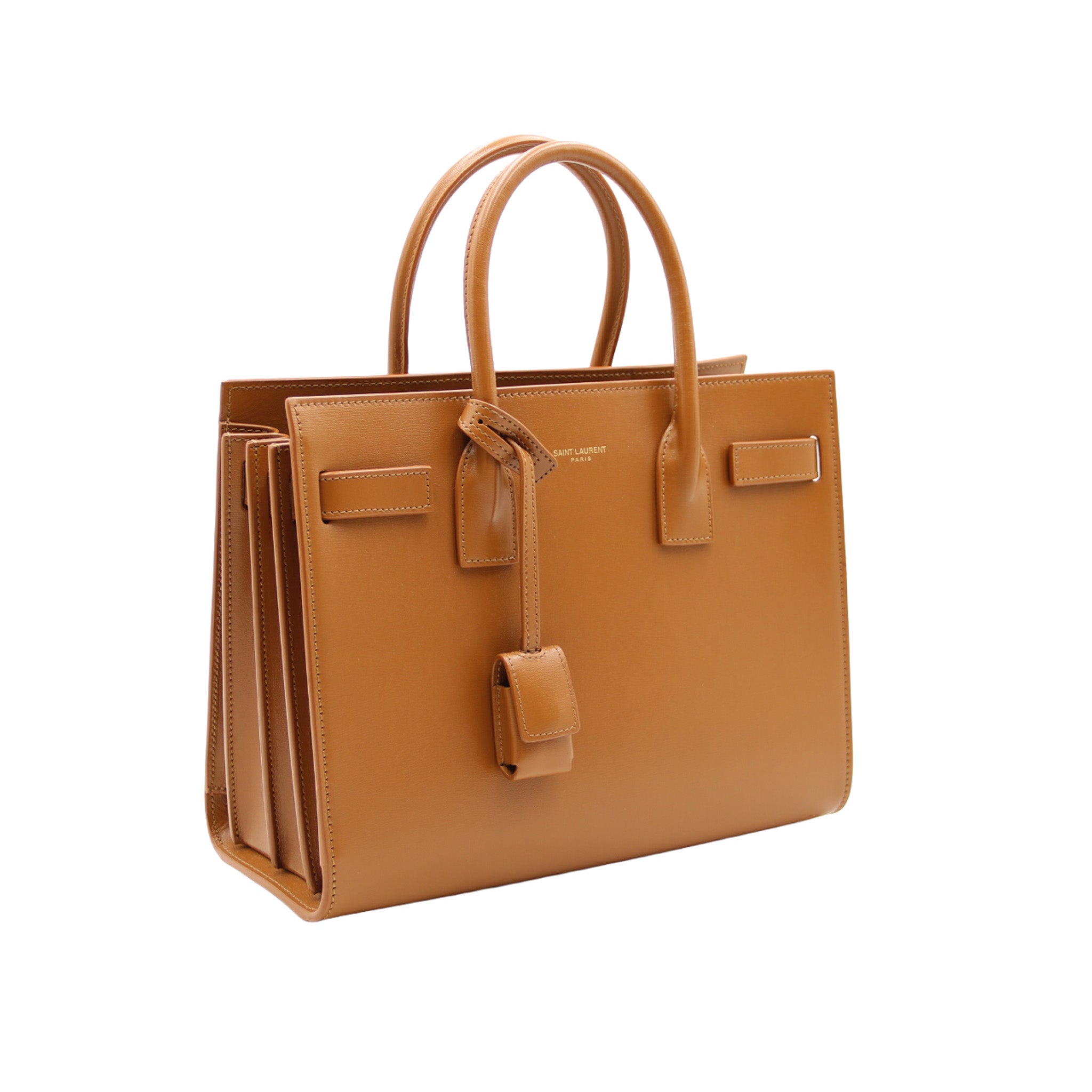 Sac Saint Laurent Sac De Jour taille Baby, en cuir lisse camel.